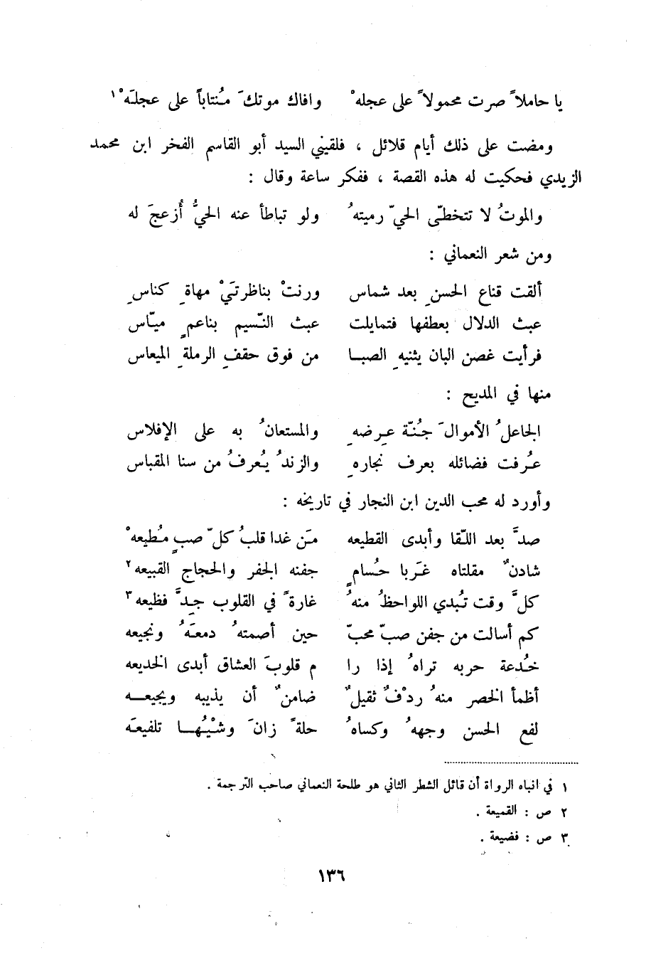 (1) في انباه الوراة أن قائل الشطر الثاني هو طلحة النعماني صاحب الترجمة.