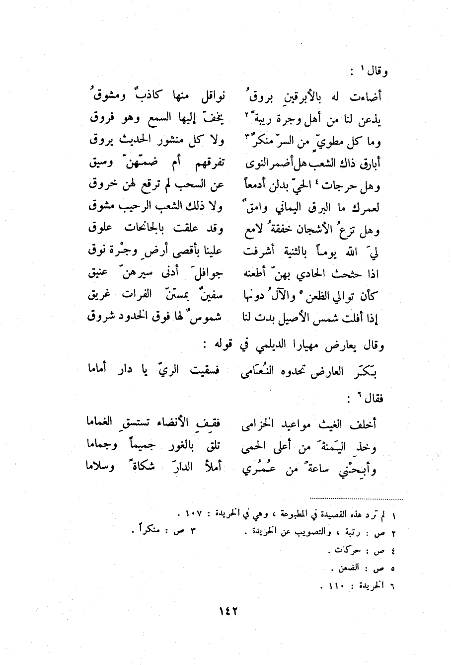 بكر العارض تحدوه النعامى ... فسقيت الري يا دار أماما فقال (6) :