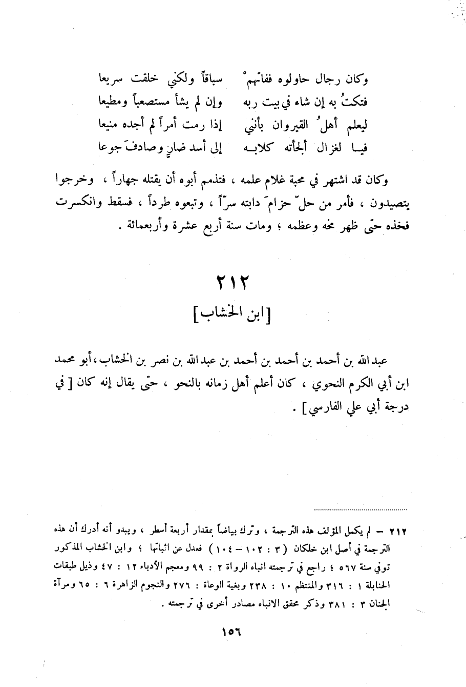 (1) لم يكمل المؤلف هذه الترجمة، وترك بياضاً بمقدار أربعة أسطر، ويبدو أنه أدرك أن هذه الترجمة في أصل ابن خلكان (3: 102 - 104) فعدل عن إثباتها؛ وابن الخشاب المذكور توفي سنة 567؛ راجع في ترجمته انباه الرواة 2: 99 ومعجم الأدباء 12: 47 وذيل طبقات الحنابلة 1: 316 والمنتظم 10: 238 وبغية الوعاة: 276 والنجوم الزاهرة 6: 65 ومرآة الجنان 3: 381 وذكر محقق الانباه مصادجر أخرى في ترجمته.