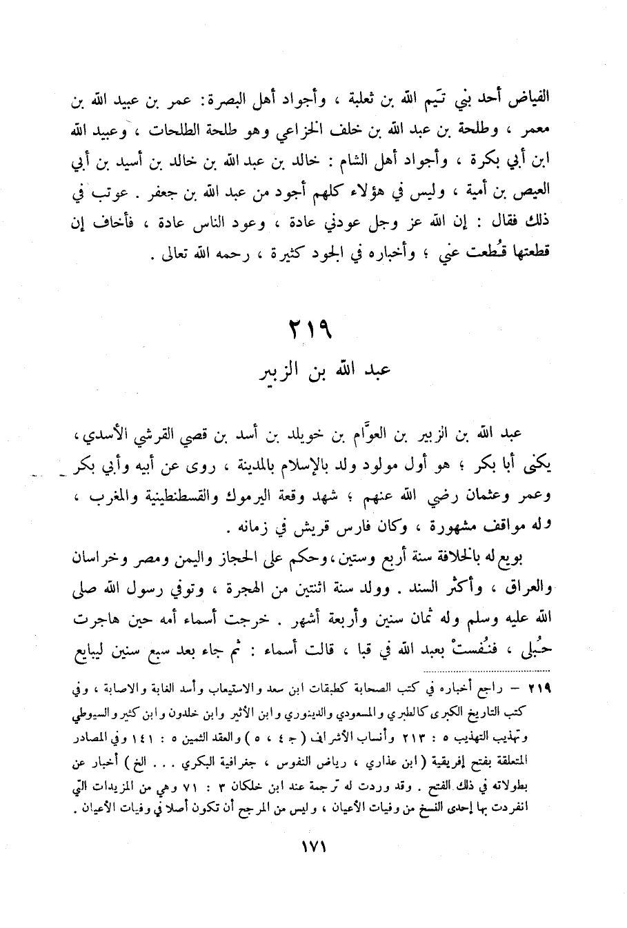 الفياض أحد بني تيم الله بن ثعلبة، وأجواد أهل البصرة: عمر بن عبيد الله بن معمر، وطلحة بن عبد الله بن خلف الخزاعي وهو طلحة الطلحات، وعبيد الله ابن أبي بكرة، وأجواد أهل الشام: خالد بن عبد الله بن خالد بن أسيد بن أبي العيص بن أمية، وليس في هؤلاء كلهم أجود من عبد الله بن جعفر. عوتب في ذلك فقال: إن الله عز وجل عودني عادة، وعود الناس عادة، فأخاف إن قطعتها قطعت عني؛ وأخباره في الجود كثيرة، رحمه الله تعالى.