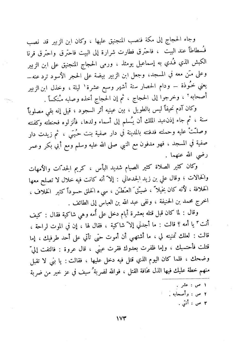 وجاء الحجاج إلى مكة فنصب المنجنيق عليها، وكان ابن الزبير قد نصب فسطاطاً عند البيت، فاحترق فطارت شرارة إلى البيت فاحترق واحترق قرنا الكبش الذي فدي به إسماعيل يومئذ، ورمى الحجاج المنجنيق على ابن الزبير وعلى من معه في المسجد، وجعل ابن الزبير بيضة على الحجر الأسود ترد عنه - يعني خوذة - ودام الحصار ستة أشهر وسبع عشرة (1) ليلة، وخذل ابن الزبير أصحابه (2) ، وخرجوا مع الحجاج، ثم إن الحجاج أخذه وصلبه منكساً.