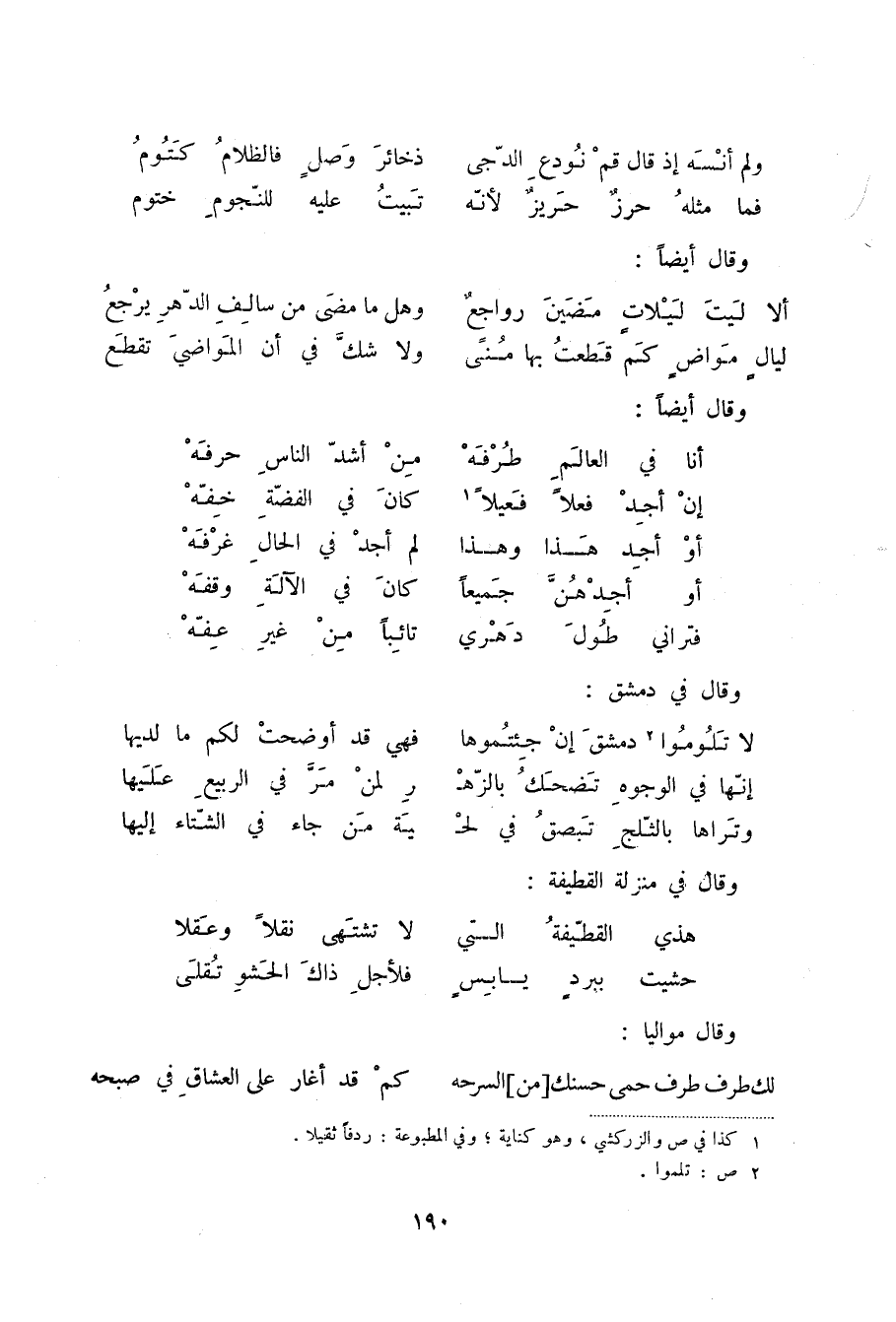 فتراني طول دهري ... تائباً من غير عفه وقال في دمشق:
