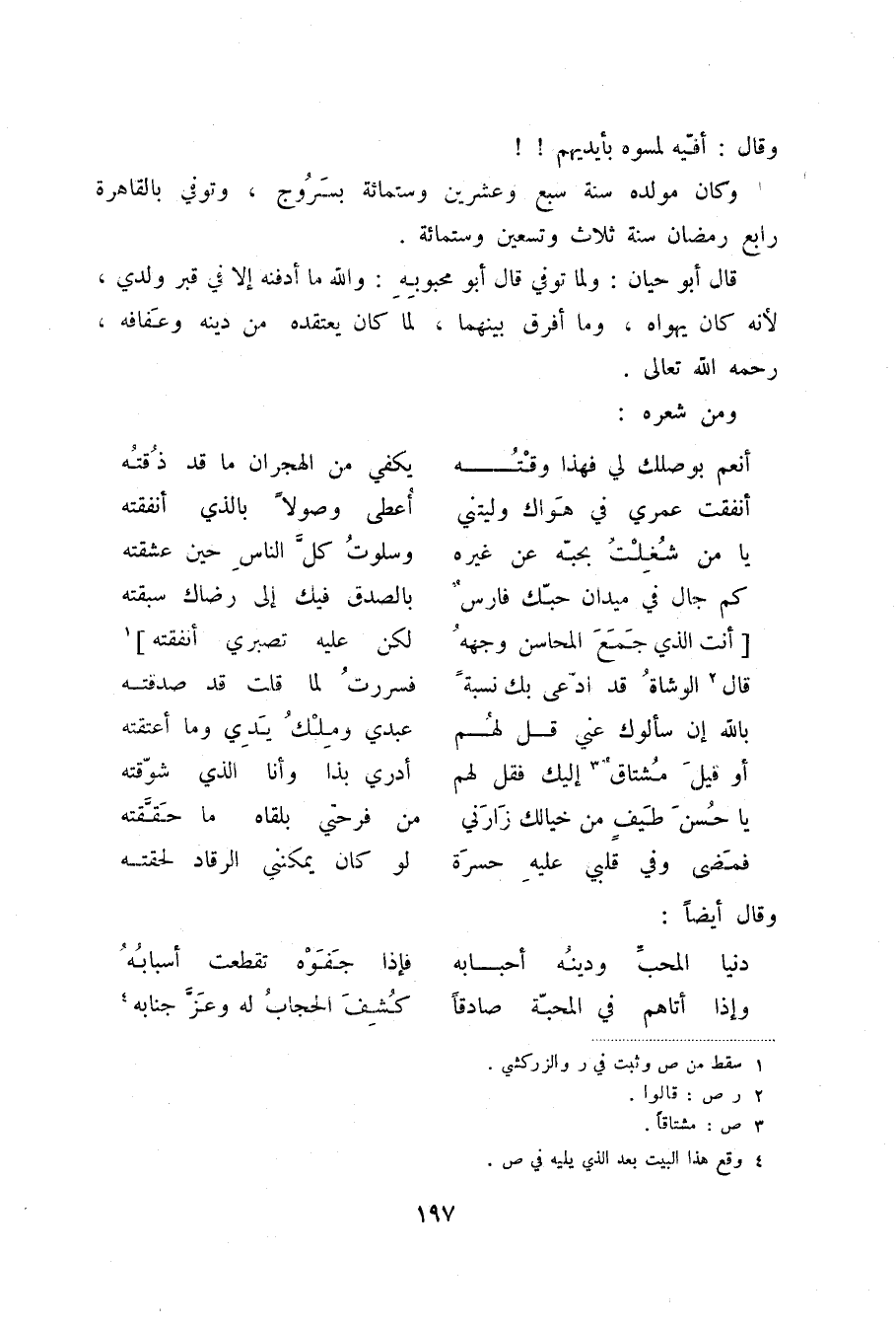قال أبو حيان: ولما توفي قال أبو محبوبة: والله ما أدفنه إلا في قبر ولدي، لأنه كان يهواه، وما أفرق بينهما، لما كان يعتقده من دينه وعفافه، رحمه الله تعالى.