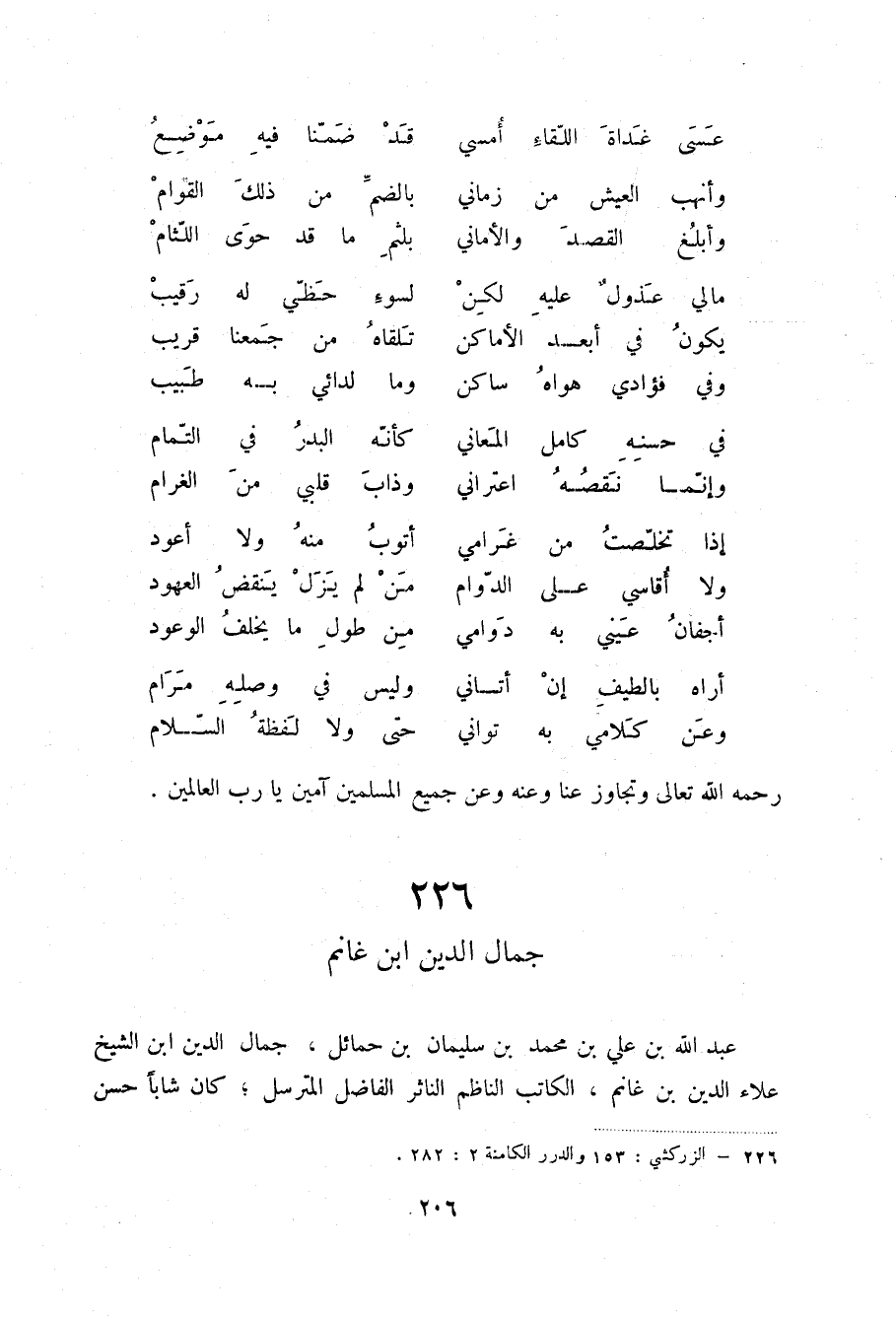 عبد الله بن علي بن محمد بن سليمان بن حمائل، جمال الدين بن الشيخ علاء الدين بن غانم، الكاتب الناظم الناثر الفاضل المترسل؛ كان شاباً حسن