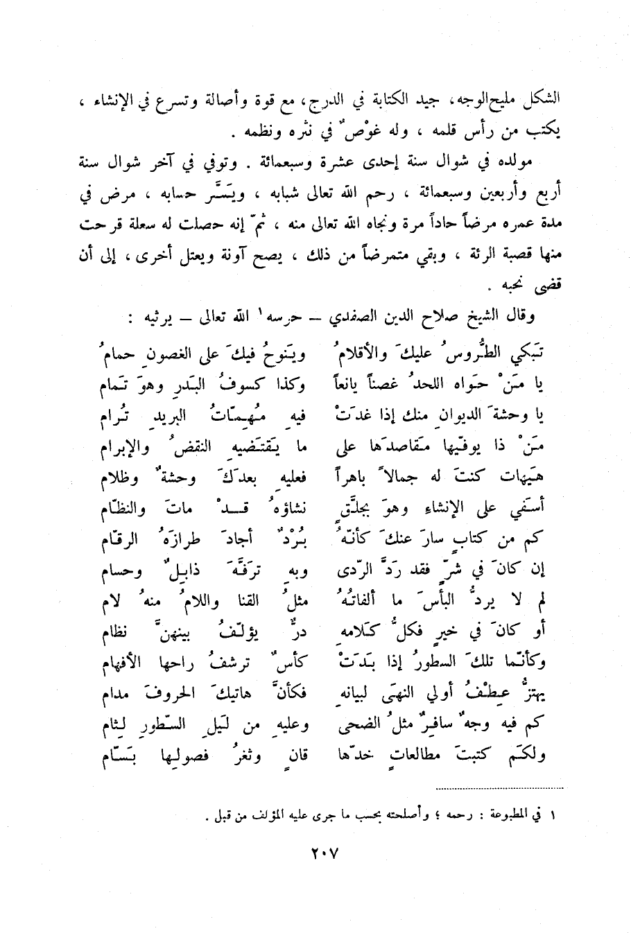 وقال الشيخ صلاح الدين الصفدي - حرسه (1) الله تعالى - يرثيه: