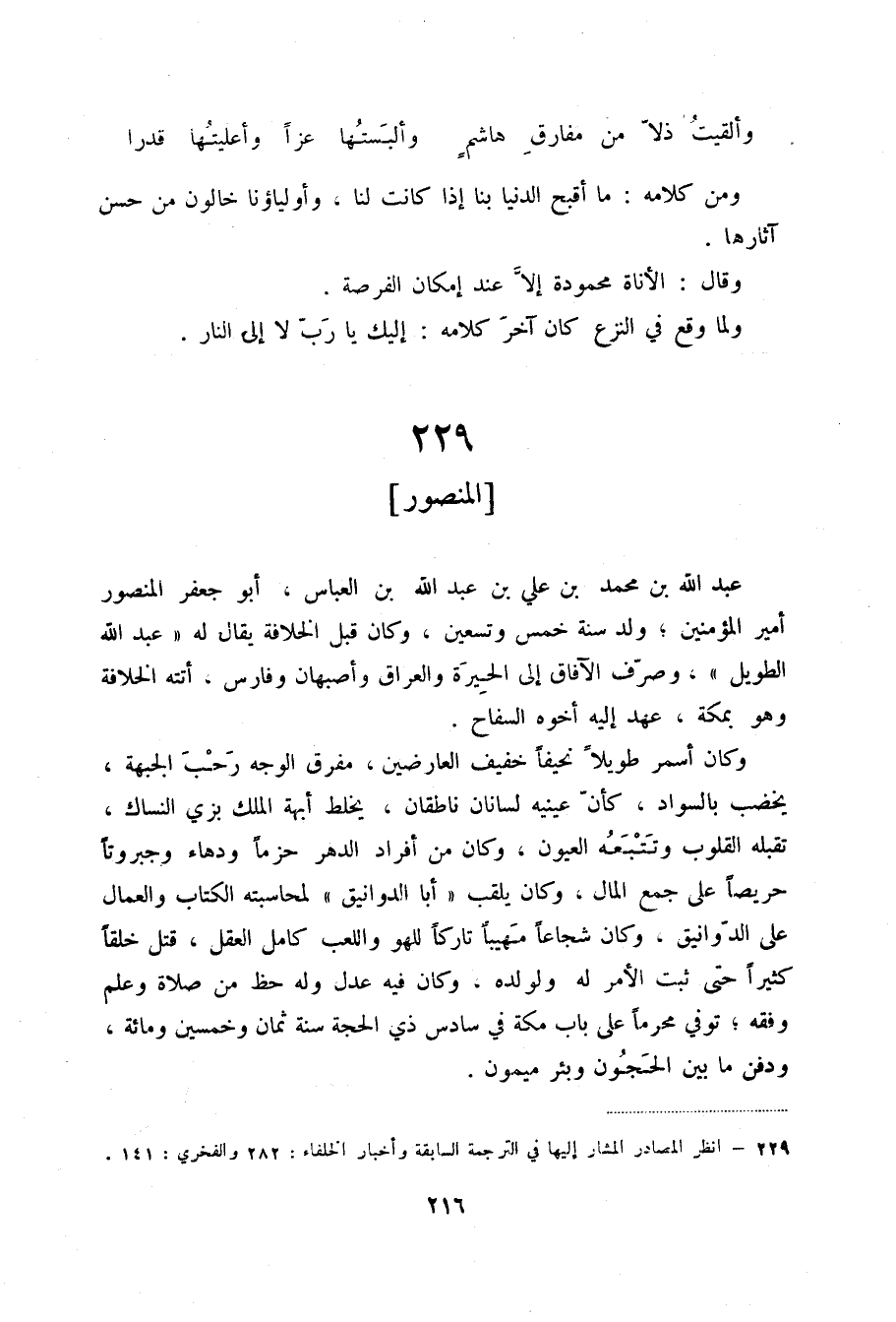 عبد الله بن محمد بن علي بن عبد الله بن العباس، أبو جعفر المنصور أمير المؤمنين، ولد سنة خمس وتسعين، وكان قبل الخلافة يقال له عبد الله الطويل، وصرف الآفاق إلى الحيرة والعراق وأصبهان وفارس، أتته الخلافة وهو بمكة، عهد إليه أخوه السفاح.