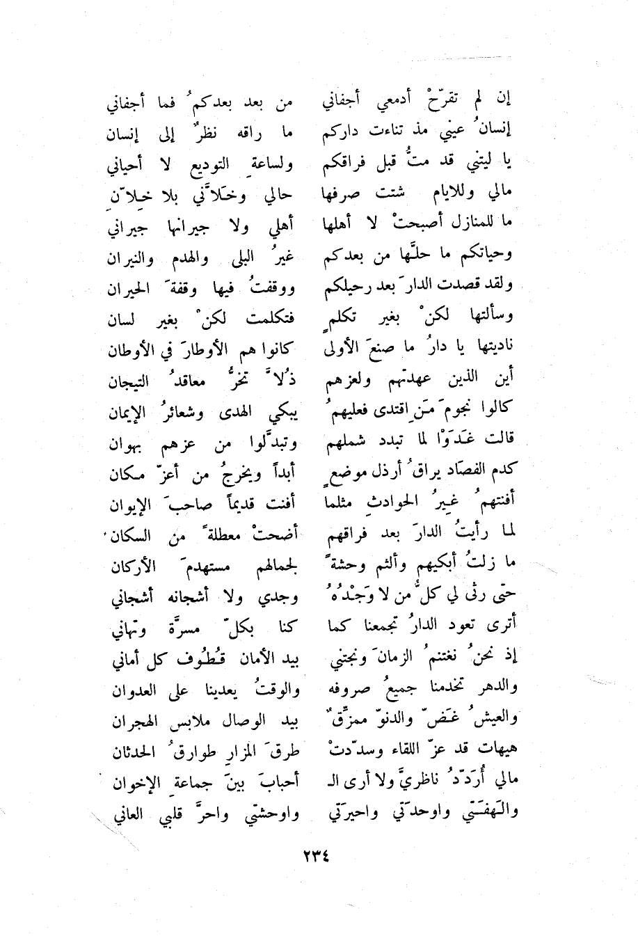 ما للمنازل أصبحت لا أهلها ... أهلي ولا جيرانها جيراني