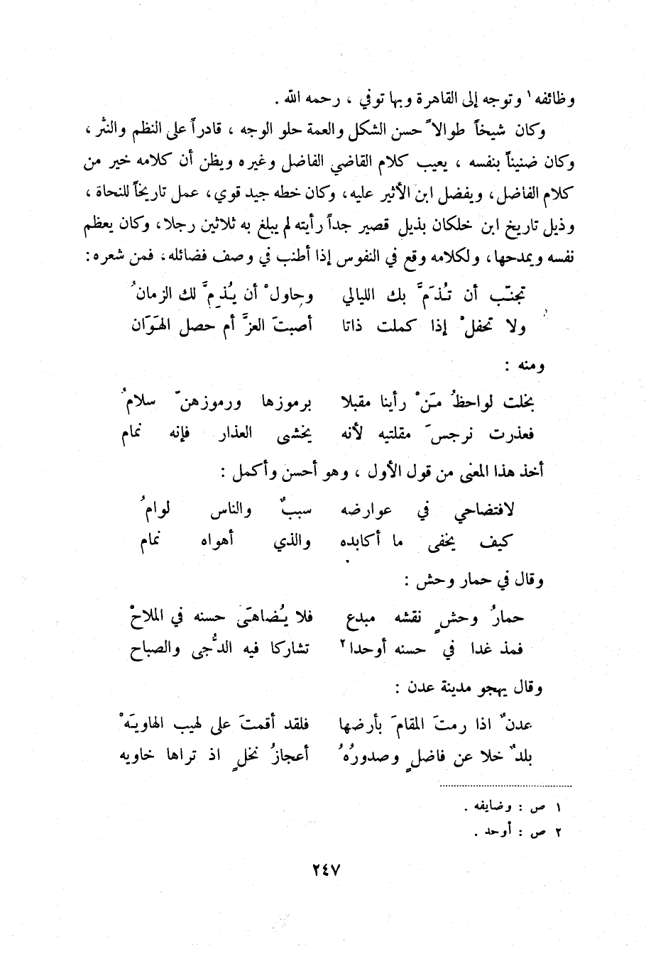 فمذ غدا في حسنه أوحدا (2) ... تشاركا فيه الدجى والصباح وقال يهجو مدينة عدن: