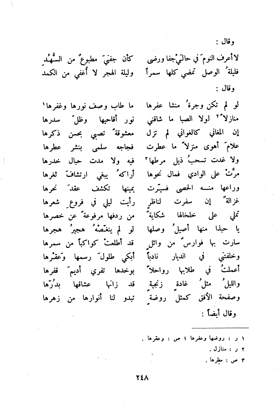 فليلة الوصل تمضي كلها سمراً ... وليلة الهجر لا أغفي من الكمد وقال: