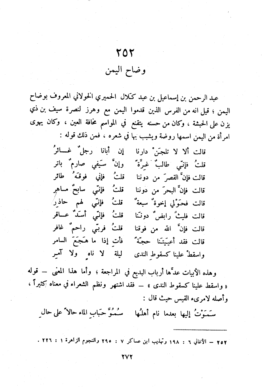 (1) الأغاني 6: 198 وتهذيب ابن عساكر 7: 295 والنجوم الزاهرة 1: 226.