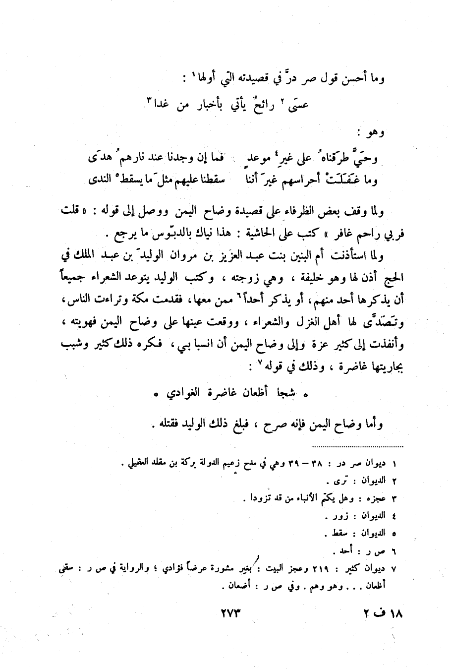 وما غفلت أحراسهم غير أننا ... سقطنا عليهم مثل ما يسقط (5) الندى ولما وقف بعض الظرفاء على قصيدة وضاح اليمن ووصل إلى قوله: قلت فربي راحم غافر كتب على الحاشية: هذا نياك بالدبوس ما يرجع.
