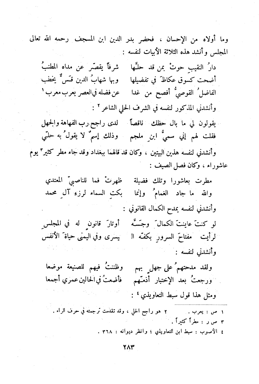 (4) الأصوب: سبط ابن التعاويذي؛ وانظر ديوانه: 368.