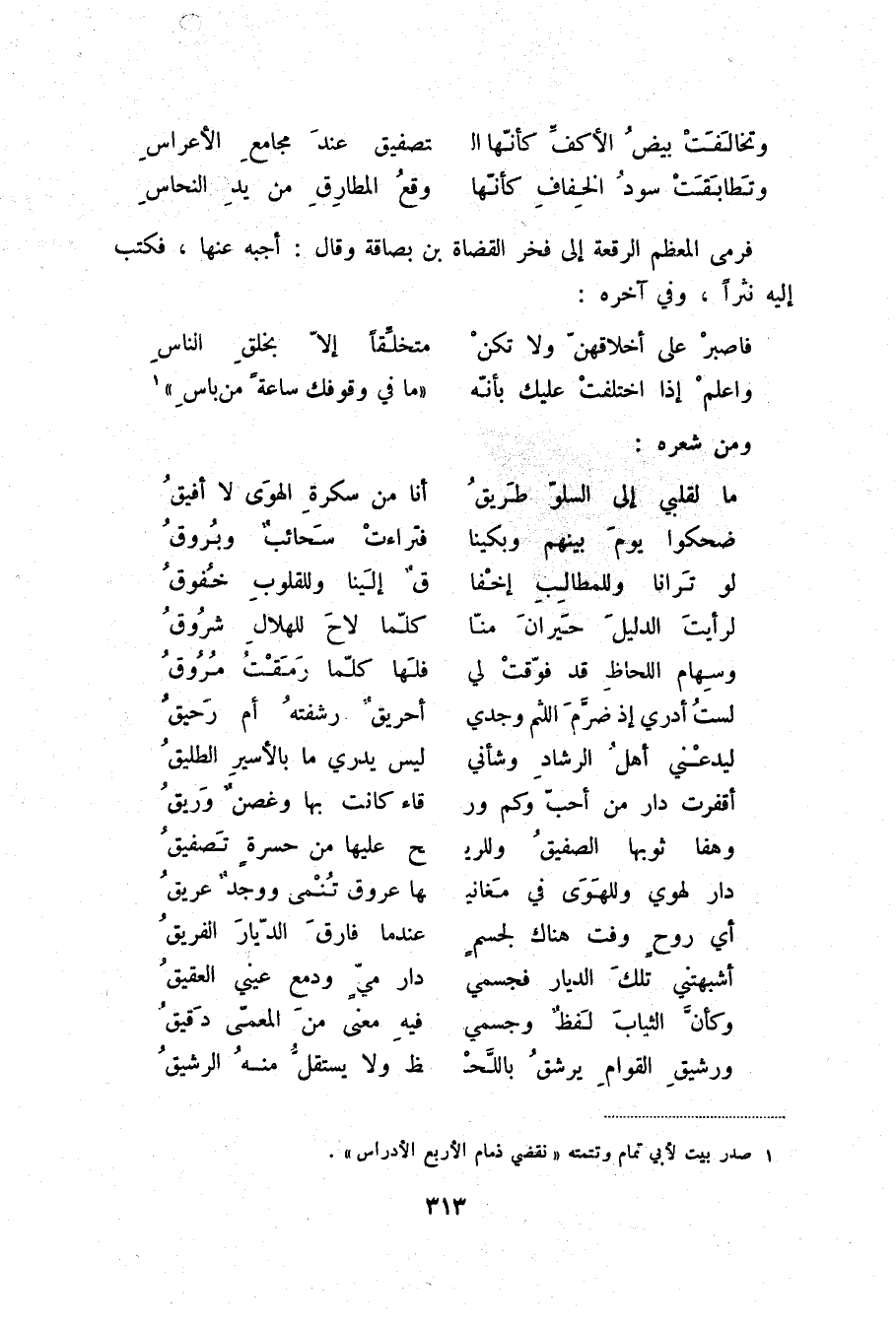 (1) صدر بيت لأبي تمام وتتمته ((نقضي ذمام الأربع الأدراس)) .