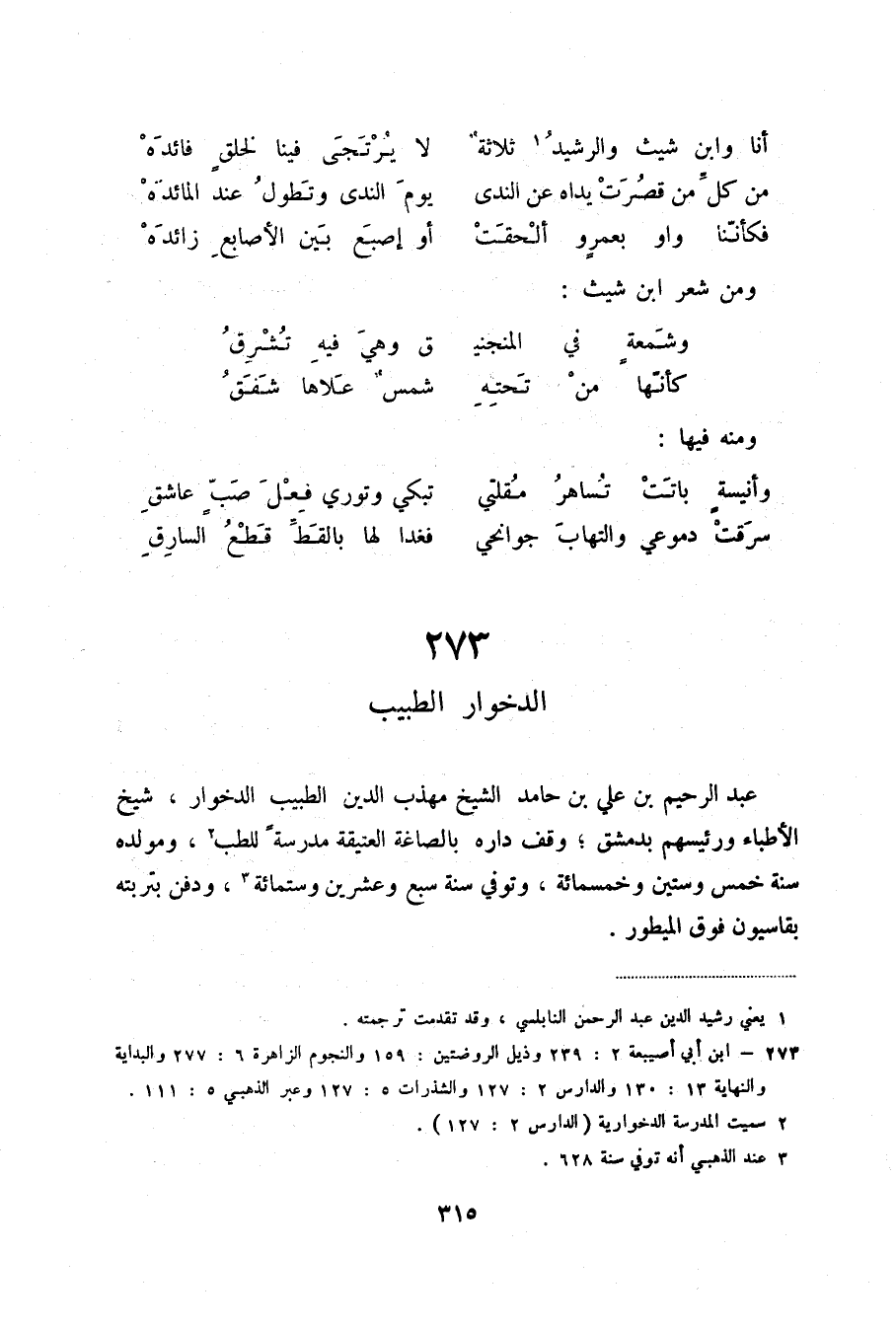 (2) ابن أبي أصيبعة 2: 239 وذيل الروضتين: 159 والنجوم الزاهرة 6: 277 والبداية والنهاية 13: 130 والدارس 2: 127 والشذرات 5: 127 وعبر الذهبي 5: 111.