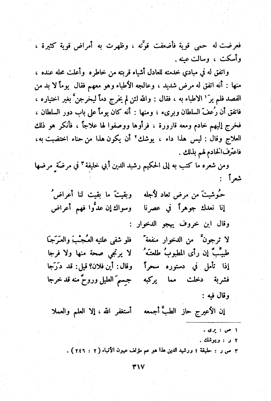 (3) ص ر: حليقة؛ ورشيد الدين هذا هو عم مؤلف عيون الأنباء (2: 246) .