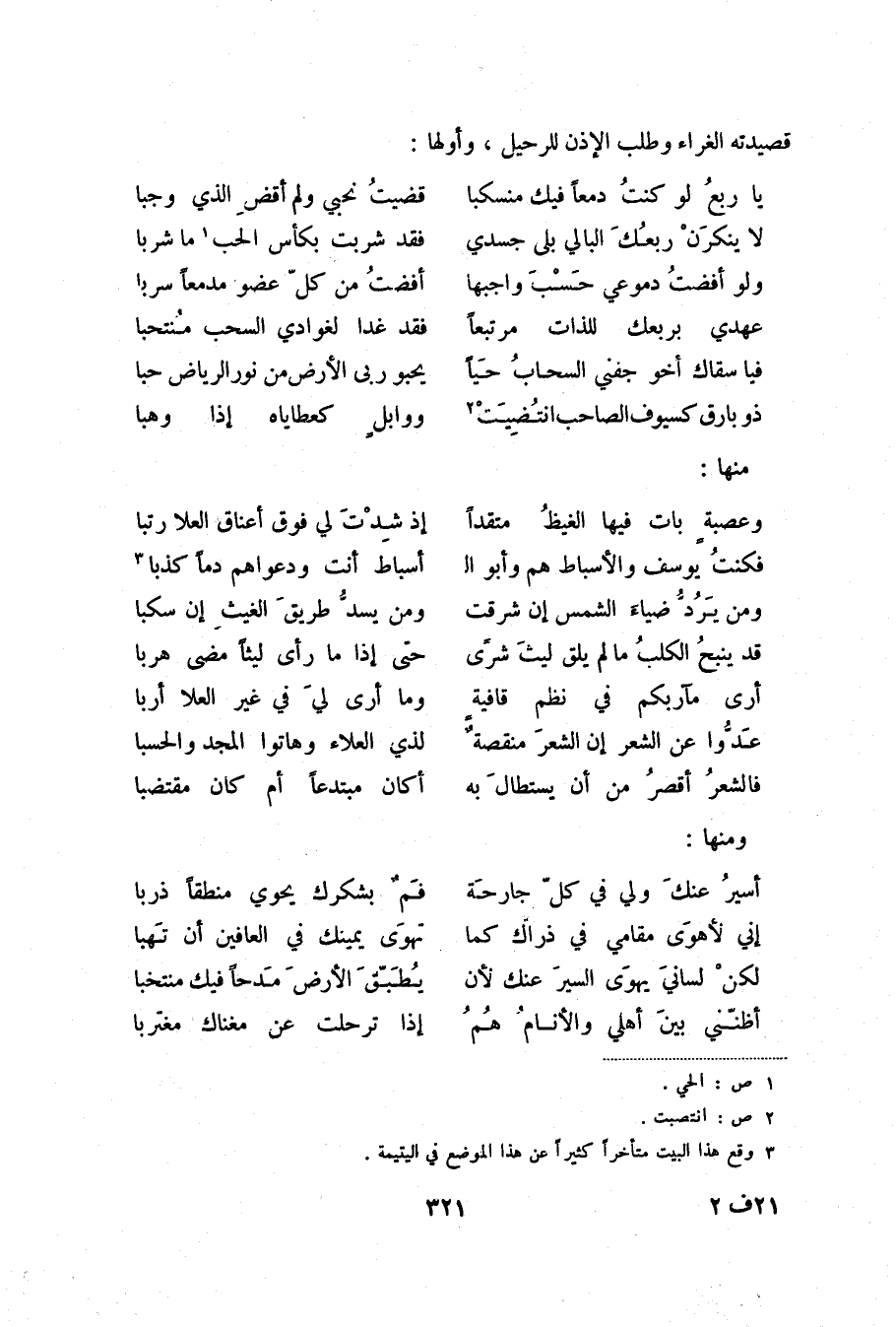 قصيدته الغراء وطلب الإذن للرحيل، وأولها: