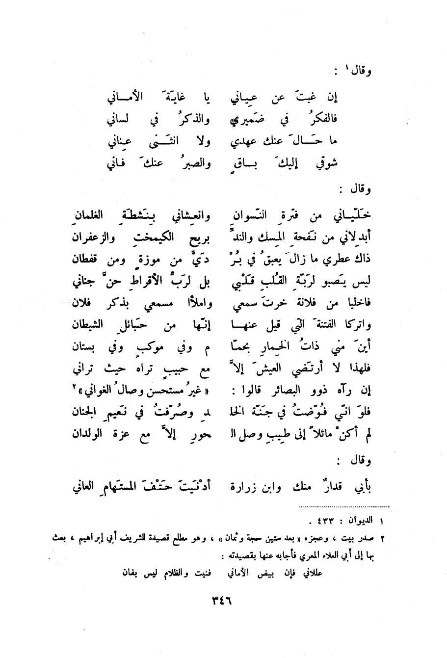 شوقي إليك باقٍ ... والصبر عنك فاني وقال: