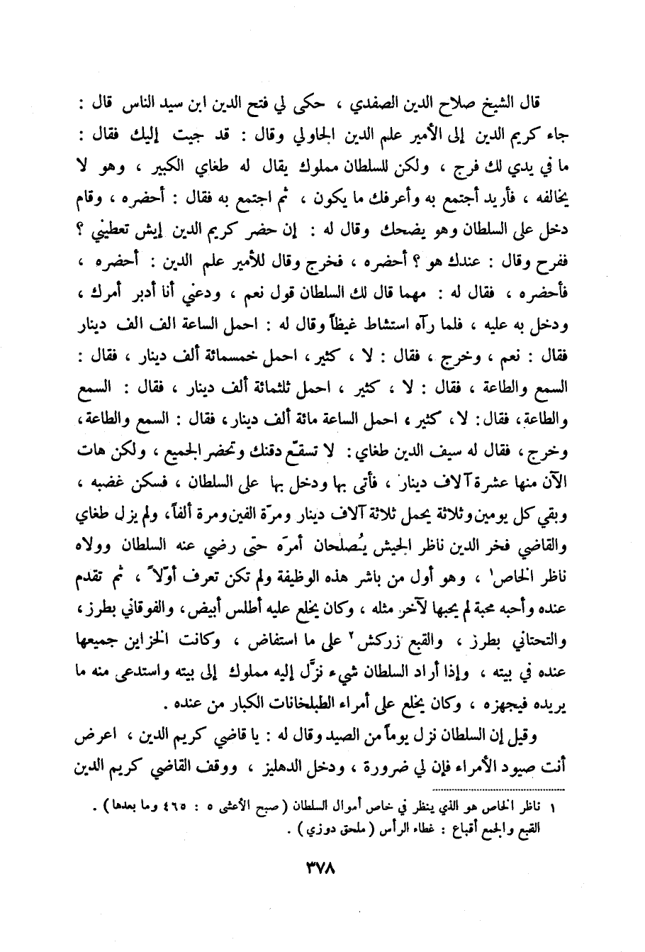 (1) ناظر الخاص هو الذي ينظر في خاص أموال السلطان (صبح الأعشى 5: 465 وما بعدها) .