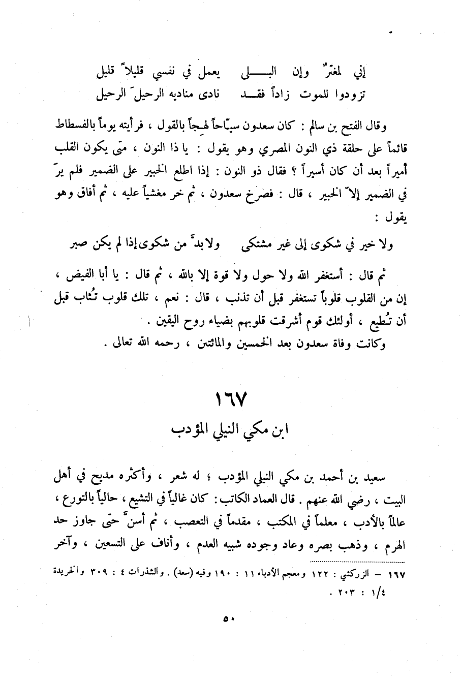 (1) الزركشي: 122 ومعجم الأدباء 11: 190 وفيه (سعد) . والشذرات 4: 309 والخريدة 1/4: 203.