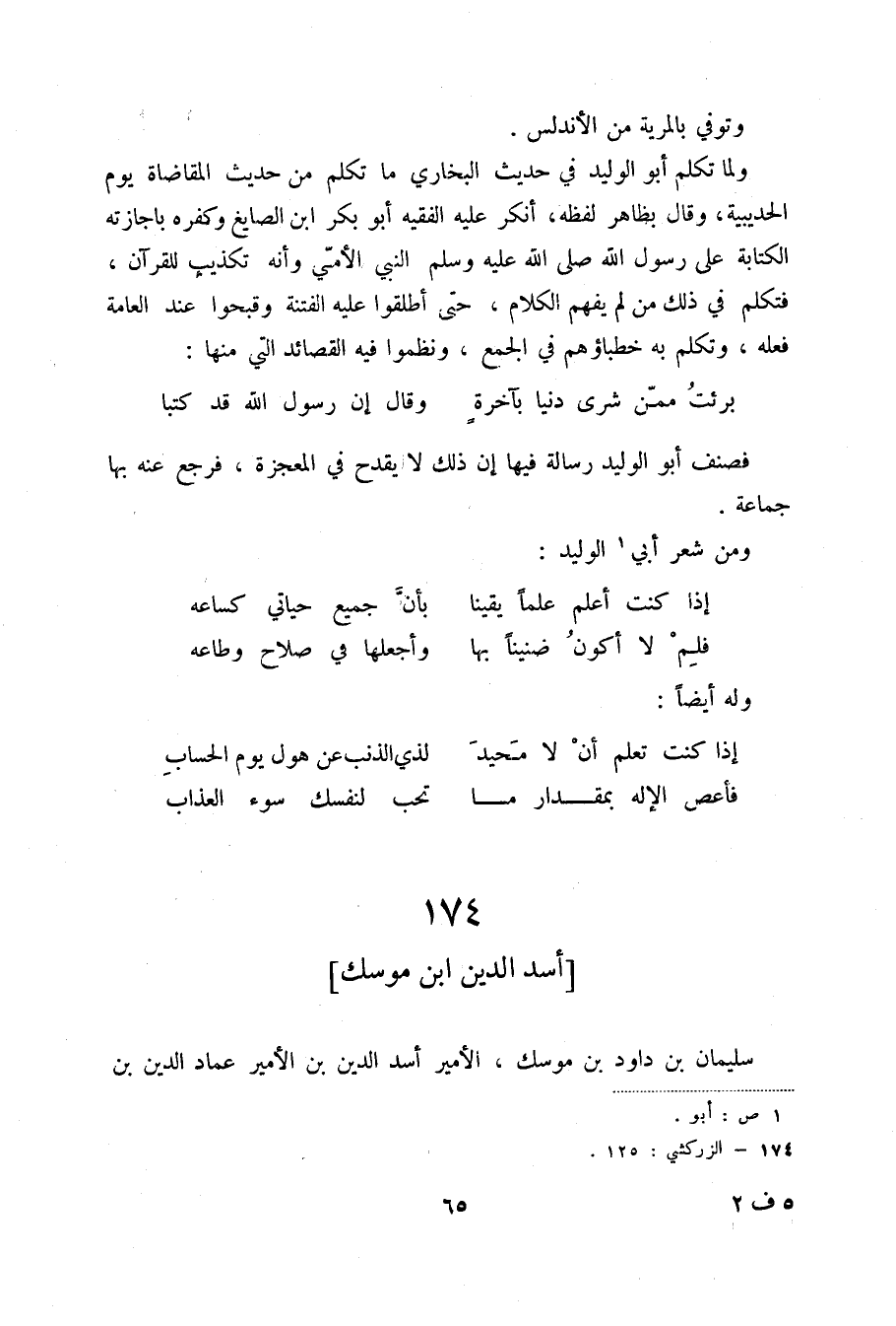 برئت ممن شرى دنيا بآخرةٍ ... وقال إن رسول الله قد كتبا فصنف أبو الوليد رسالة فيها إن ذلك لا يقدح في المعجزة، فرجع عنه بها جماعة.