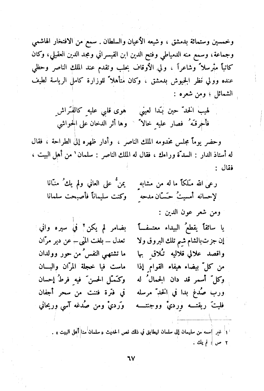 لإحسانه أمسيت حسان مدحه ... وكنت سليماناً فأصبحت سلمانا ومن شعر عون الدين: