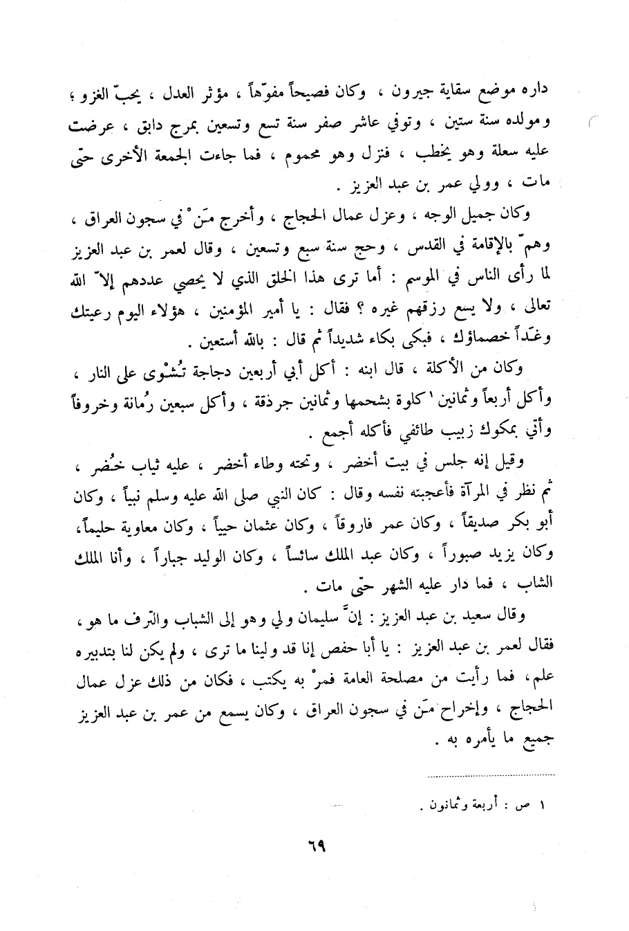 داره موضع سقاية جيرون، وكان فصيحاً مفوهاً، مؤثر العدل، يحب الغزو؛ ومولده سنة ستين، وتوفي عاشر صفر سنة تسع وتسعين بمرج دابق عرضت عليه سعلة وهو يخطب، فنزل وهو محموم، فما جاءت الجمعة الأخرى حتى مات، وولي عمر بن عبد العزيز.
