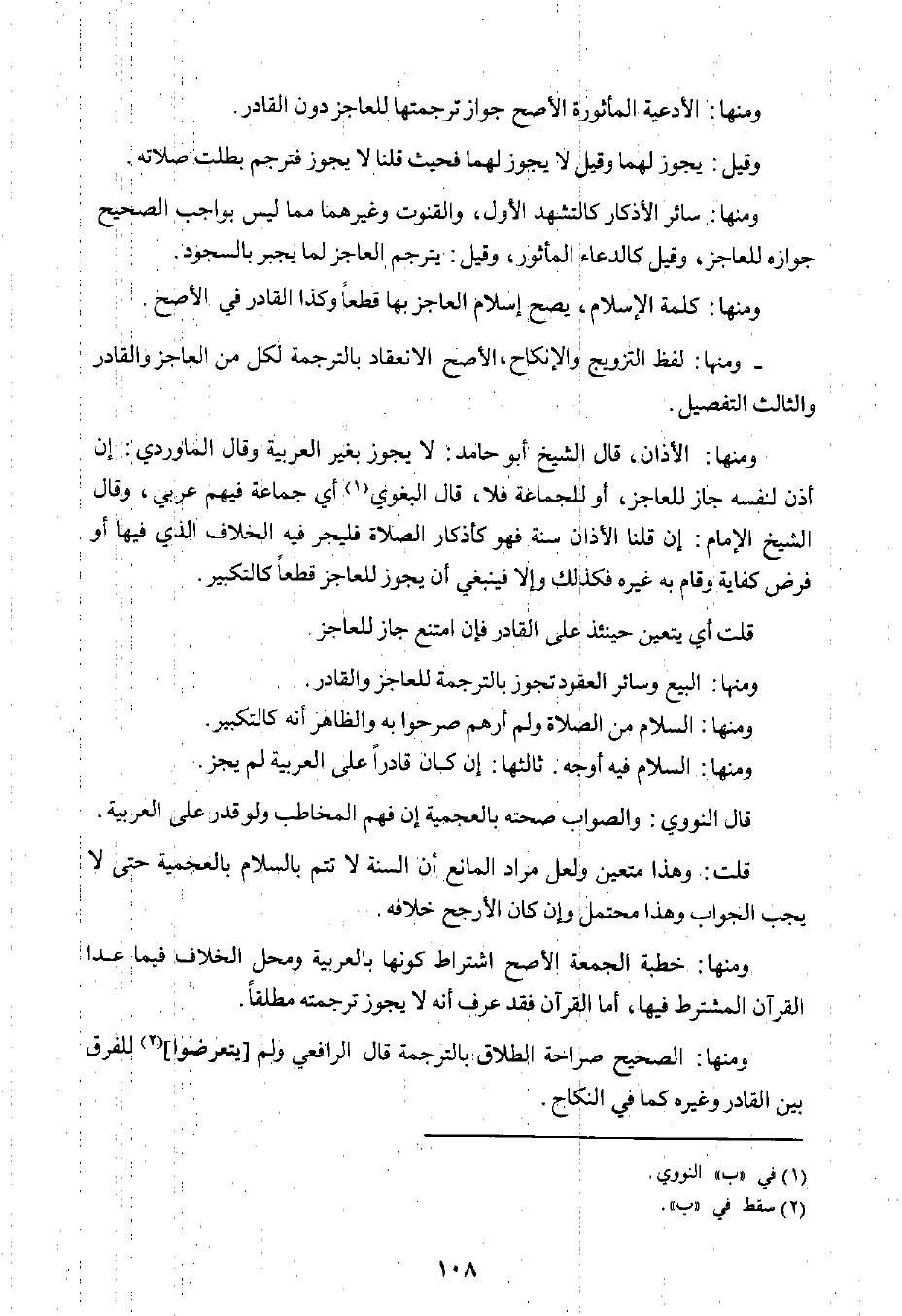 ومنها: الأدعية المأثورة الأصح جواز ترجمتها للعاجز دون القادر.