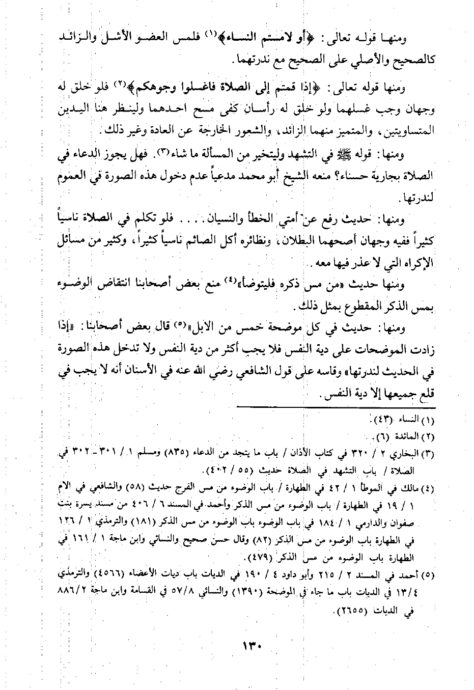 ٤ مالك في الموطأ ١/٤٢ في الطهارة/ باب الوضوء من مس الفرج، حديث "٥٨" والشافعي في الأم ١/ ١٩ في الطهارة/ باب الوضوء من مس الذكر وأحمد في المسند ٦/ ٤٠٦ من مسند يسرة بنت صفوان والدارمي ١/ ١٨٤ في باب الوضوء باب الوضوء من مس الذكر "١٨١" والترمذي ١/ ١٢٦ في الطهارة باب الوضوء من مس الذكر "٨٢" وقال حسن صحيح والنسائي وابن ماجه ١/ ١٦١ في الطهارة باب الوضوء من مس الذكر "٤٧٩".