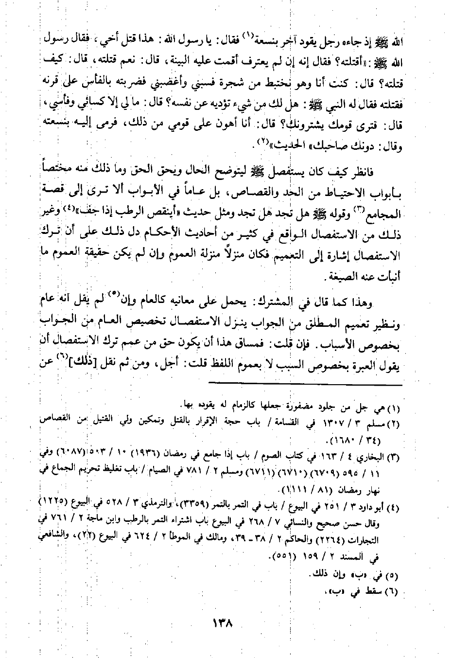 فانظر كيف كان يستفصل صلى الله عليه وسلم ليتوضح الحال ويحق الحق وما ذلك منه مختًا بأبواب الاحيتاط من الحد والقصاص؛ بل عامًا في الأبواب ألا ترى إلى قصة المجامع٣ وقوله صلى الله عليه وسلم هل تجد هل تجد ومثل حديث "أينقص الرطب إذا جف" ٤ وغير ذلك من الاستفصال الواقع في كثير من أحاديث الأحكام دل ذلك على أن ترك الاستفصال إشارة إلى التعميم فكان منزلًا منزلة العموم وإن لم يكن حقيقة العموم ما أنبأت عنه الصيغة.