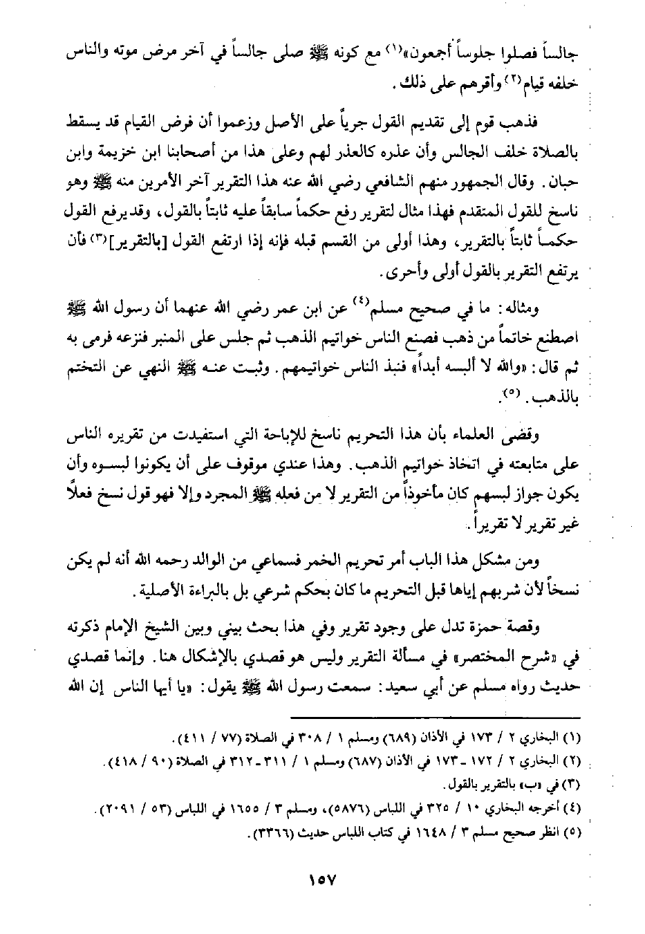 وقصة حمزة تدل على وجود تقرير، وفي هذا بحث بيني وبين الشيخ الإمام ذكرته في "شرح المختصر" في مسألة التقرير وليس هو قصدي بالإشكال هنا؛ وإنما قصدي حديث رواه مسلم عن أبي سعيد: سمعت رسول الله صلى الله عليه وسلم يقول: "يا أيها الناس إن الله