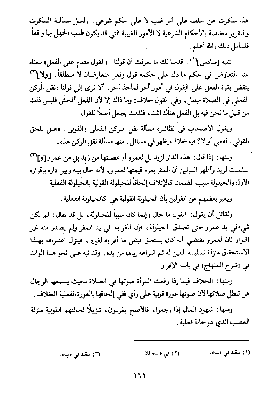 قدمنا لك ما يعرفك أن قولنا: "القول مقدم على الفعل" معناه عند التعارض في حكم ما دل على حكمه قول وفعل متعارضان مطلقًا. [ولا] ٢ ينقض بقوة الفعل على القول في أمور آخر لمأخذ آخر؛ ألا ترى إلى قولنا "نقل الركن الفعلي في الصلاة مبطل، وفي القول خلاف" وما ذاك إلا لأن الفعل أفحش؛ فليس ذلك من قبيل ما نحن فيه بل الفعل هناك أشد؛ فلذلك يجعل أصلًا للقول.