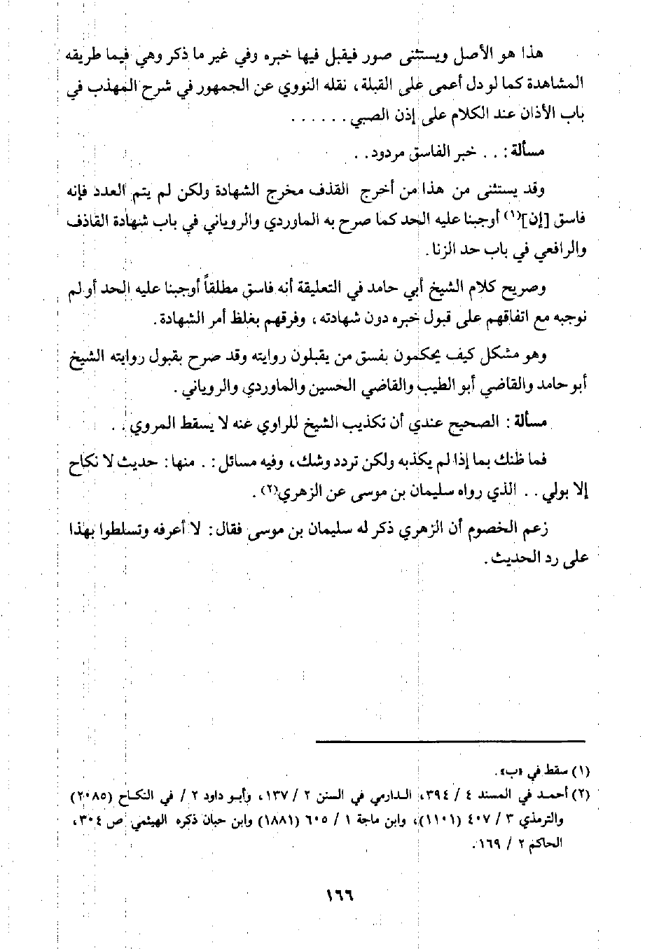 فما ظنك بما إذا لم يكذبه ولكن تردد وشك، وفيه مسائل: منها: حديث لا نكاح إلا بولي. الذي رواه سليمان بن موسى عن الزهري٢.