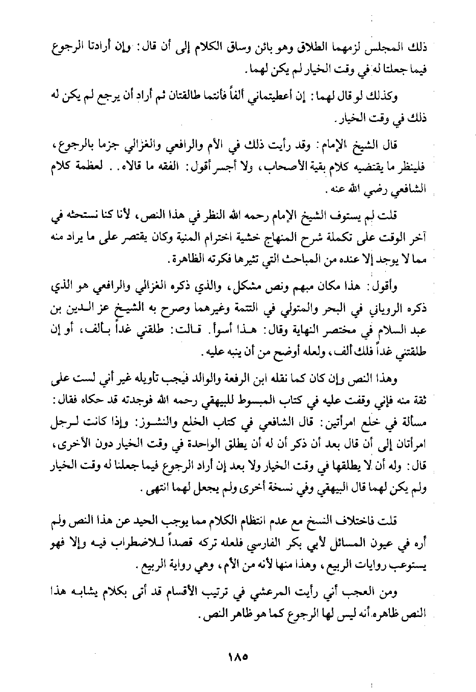 قلت لم يستوف الشيخ الإمام رحمه الله النظر في هذا النص؛ لأنا كنا نستحثه في آخر الوقت على تكملة شرح المنهاج خشية اخترام المنية، وكان يقتصر على ما يراد منه مما لا يوجد إلا عنده من المباحث التي تثيرها فكرته الظاهرة.