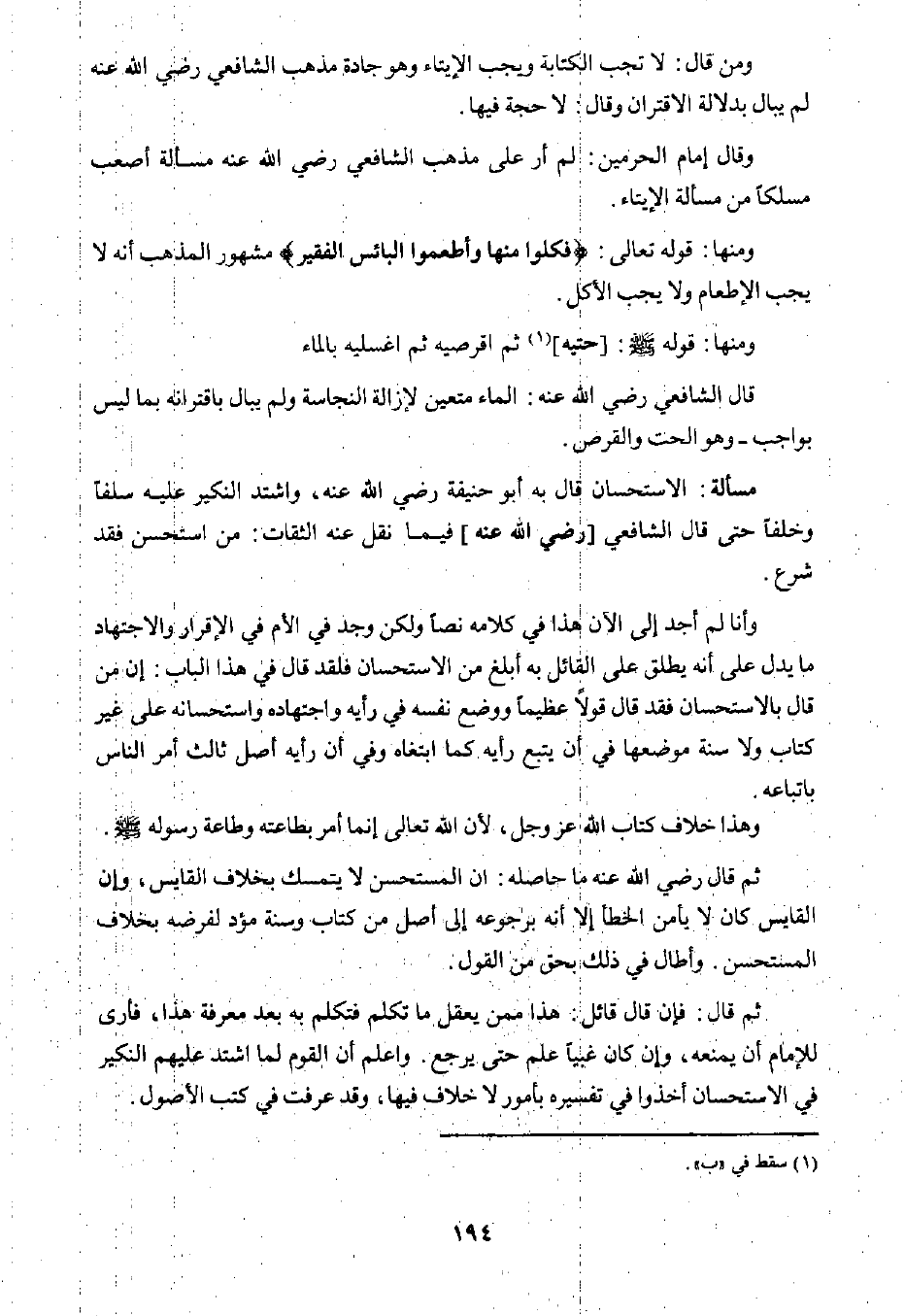 الاستحسان قال به أبو حنيفة رضي الله عنه، واشتد النكير عليه سلفًا وخلفًا حتى قال الشافعي [رضي الله عنه] فيما نقل عنه الثقات: من استحسن فقد شرع.