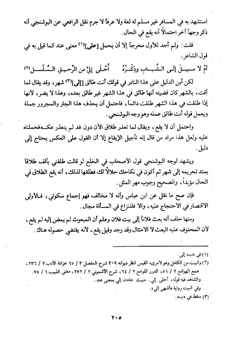 استشهد به في المسافر غير مسلم له لغة ولا عرفًا لا جرم نقل الرافعي عن البوشنجي أنه ذكر وجهًا آخر احتمالًا أنه يقع في الحال.
