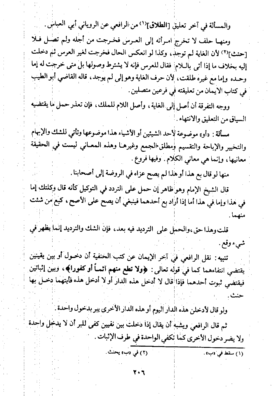نقل الرافعي في آخر الإيمان عن كتب الحنفية أن دخول أو بين يقينين يقتضي انتفاءهما كما في قوله تعالى: {وَلَا تُطِعْ مِنْهُمْ آَثِمًا أَوْ كَفُورًا} ، وبين إثباتين فيقتضي ثبوت أحدهما فإذا قال لا أدخل هذا الدار أو لا أدخل هذه فأيتهما دخل بها حنث.