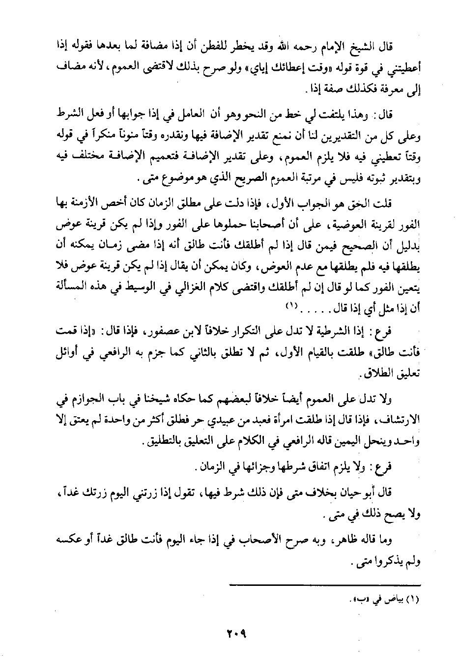 قلت الحق هو الجواب الأول؛ فإذا دلت على مطلق الزمان كان أخص الأزمنة بها الفور لقرينة العوضية، على أن أصحابنا حملوها على الفور وإذا لم يكن قرينة عوض بدليل أن الصحيح فيمن قال إذا لم أطلقك فأنت طالق أنه إذا مضى زمان يمكنه أن يطلقها فيه فلم يطلقها مع عدم العوض، وكان يمكن أن يقال إذا لم يكن قرينة عوض فلا يتعين الفور، كما لو قال إن لم أطلقك واقتضى كلام الغزالي في الوسيط في هذه المسألة أن إذا مثل أي إذا قال ... ١.