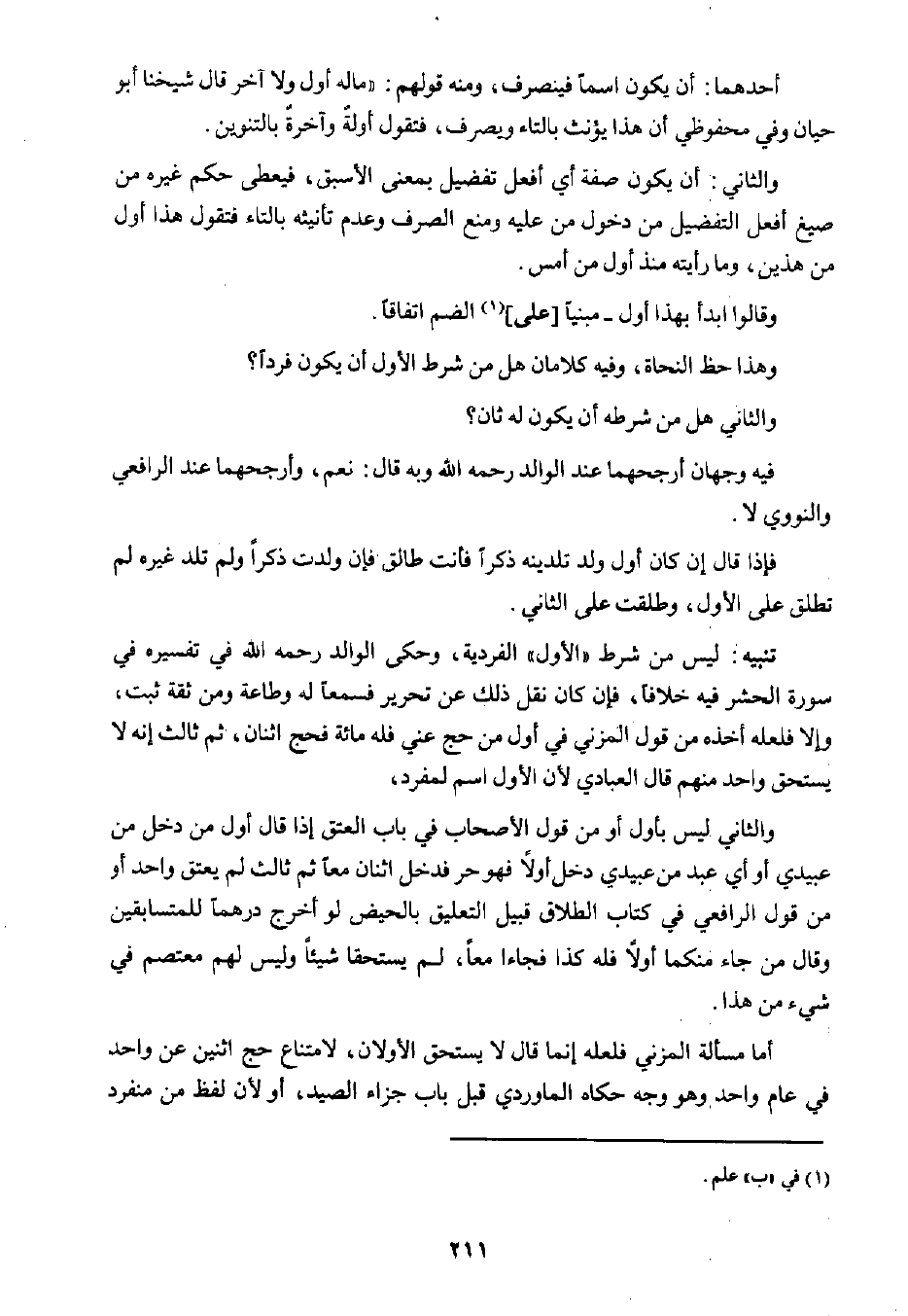 وهذا حظ النحاة، وفيه كلامان هل من شرط الأول أن يكون فردًا؟