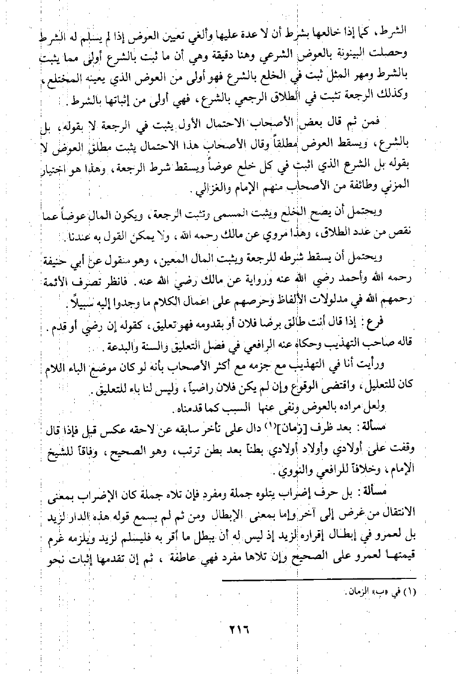 ويحتمل أن يسقط شرطه للرجعة ويثبت المال المعين، وهو منقول عن أبي حنيفة رحمه الله وأحمد رضي الله عنه ورواية عن مالك رضي الله عنه؛ فانظر تصرف الأئمة رحمهم الله في مدلولات الألفاظ وحرصهم على أعمال الكلام ما وجدوا إليه سبيلًا.