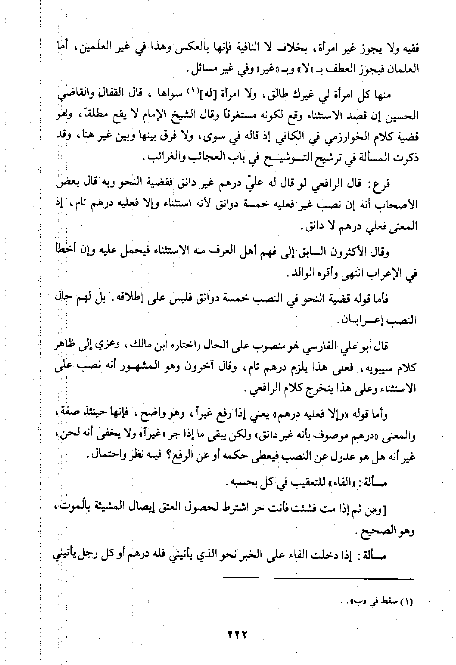 فقيه ولا يجوز غير امرأة، بخلاف لا النافية؛ فإنها بالعكس وهذا في غير العلمين، أما العلمان فيجوز العطف بـ "لا" وبـ "غير" وفي غير مسائل.