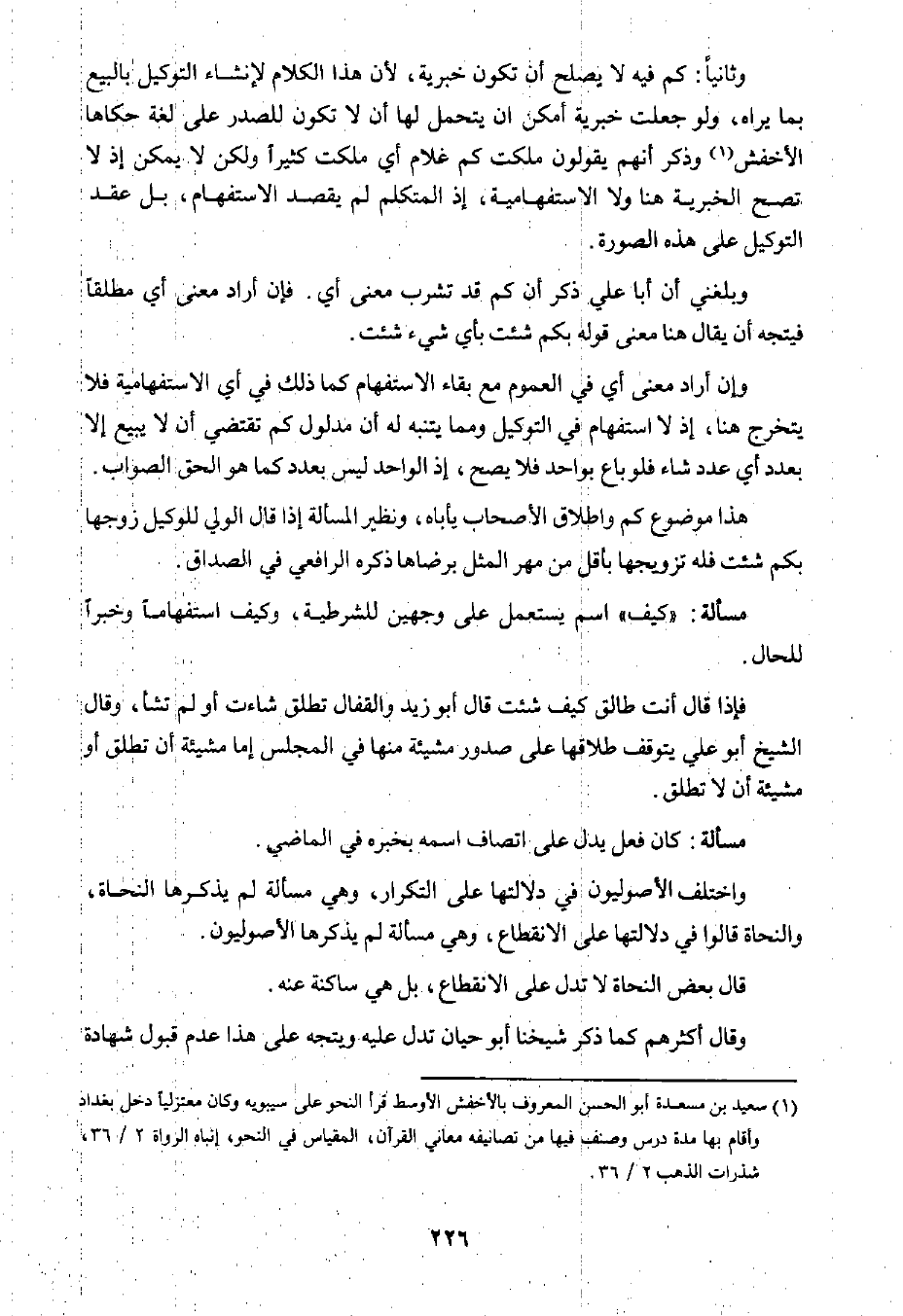 ١ سعيد بن مسعدة أبو الحسن المعروف بالأخفش الأوسط قرأ النحو على سيبويه وكان معتزليًا دخل بغداد وأقام بها مدة درس وصنف فيها من تصانيفه معاني القرآن، المقياس في النحو، إنباه الرواة ٢/ ٣٦، شذرات الذهب ٢/ ٣٦.