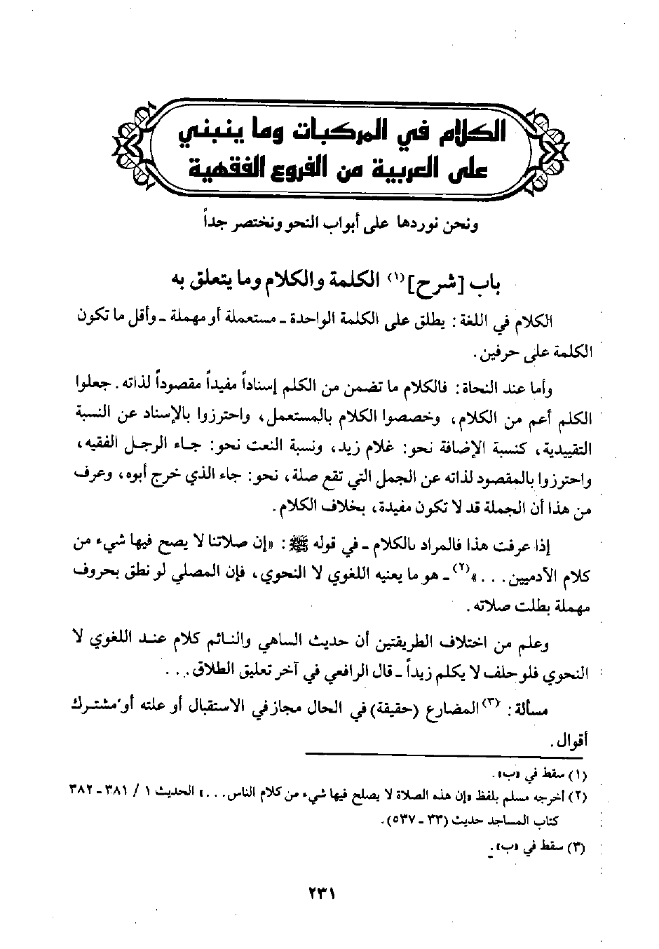 باب [شرح] ١ الكلمة والكلام وما يتعلق به: