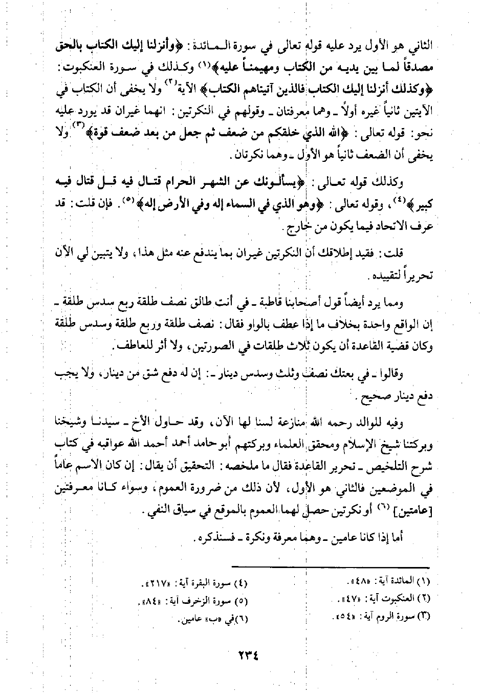 وفيه للوالد رحمه الله منازعة لسنا لها الآن، وقد حاول الأخ سيدنا وشيخنا وبركتنا شيخ الإسلام ومحقق العلماء وبركتهم أبو حامد أحمد -أحمد الله عواقبه- في كتاب شرح التلخيص تحرير القاعدة فقال ما ملخصه: التحقيق أن يقال: إن كان الاسم عامًا في الموضعين فالثاني هو الأول؛ لأن ذلك من ضوررة العموم، وسواء كانا معرفتين [عامتين] ٦ أو نكرتين حصل لهما العموم بالموقع في سياق النفي.