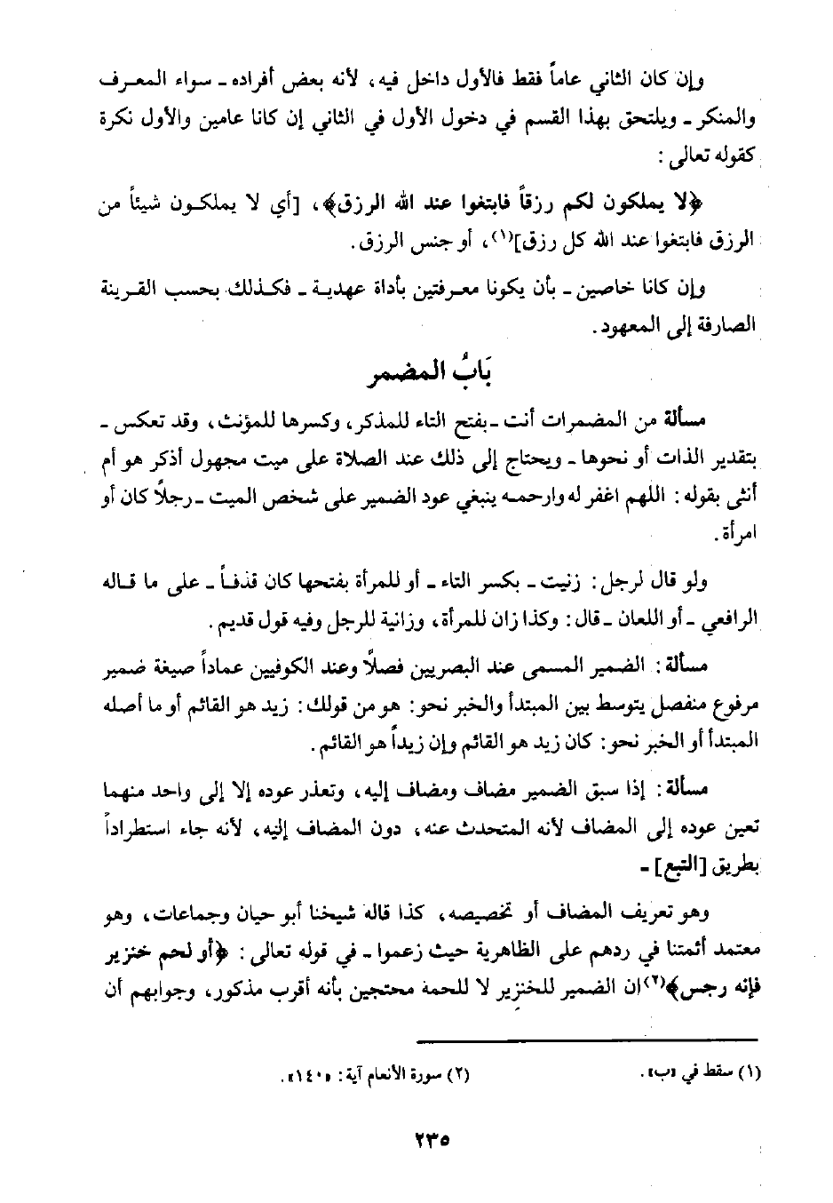 إذا سبق الضمير مضاف ومضاف إليه، وتعذر عوده إلا إلى واحد منهما تعين عوده إلى المضاف لأنه المتحدث عنه، دون المضاف إليه، لأنه جاء استطرادًا بطريق [التبع]-