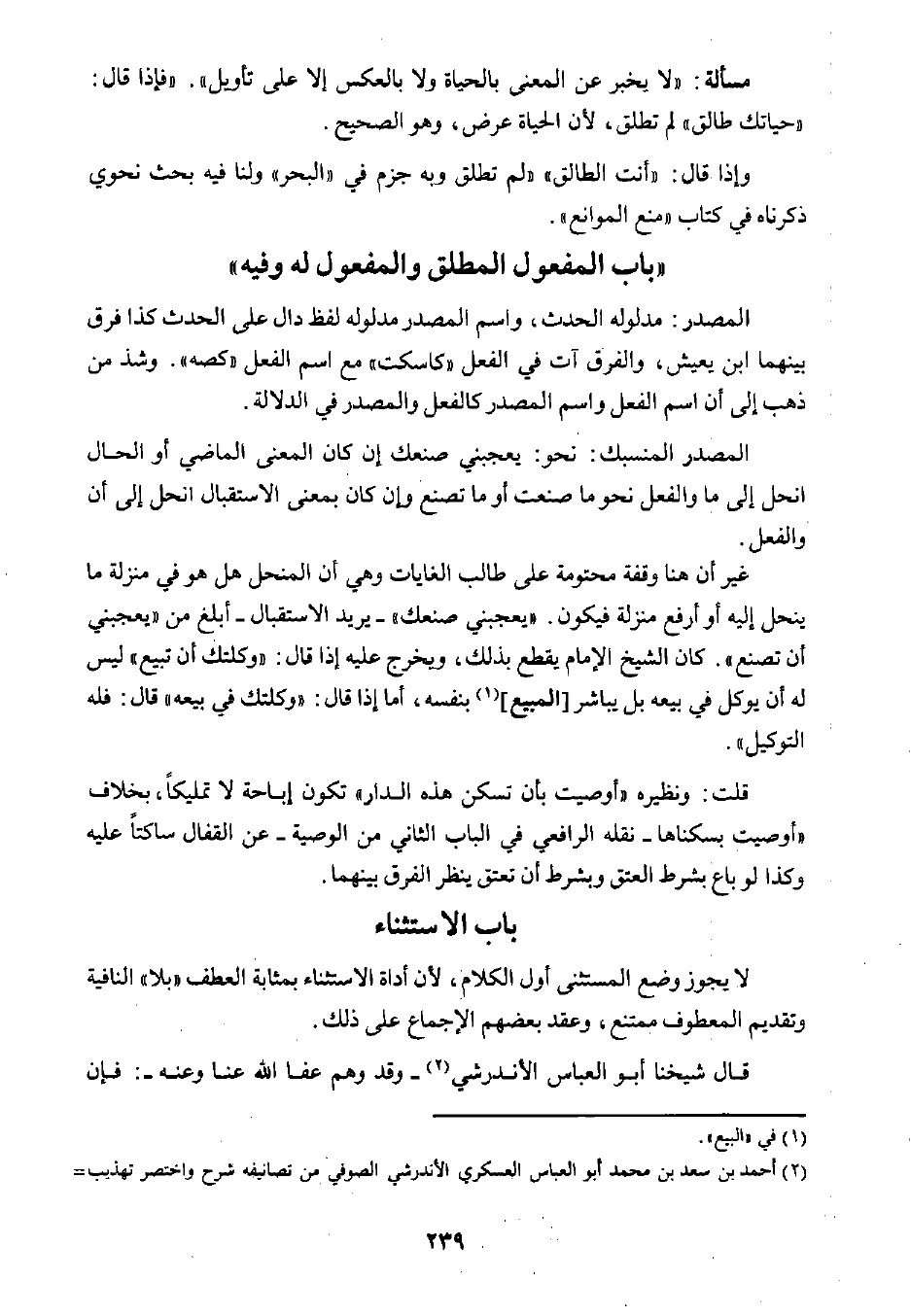 غير أن هنا وقفة محتومة على طالب الغايات وهي أن المنحل هل هو في منزلة ما ينحل إليه أو أرفع منزلة فيكون. "يعجبني صنعك" -يريد الاستقبال- أبلغ من "يعجبني أن تصنع". كان الشيخ الإمام يقطع بذلك، ويخرج عليه إذا قال: "وكلتك أن تبيع" ليس له أن يوكل في بيعه بل يباشر [المبيع] ١ بنفسه، أما إذا قال: "وكلتك في بيعه" قال: فله التوكيل".