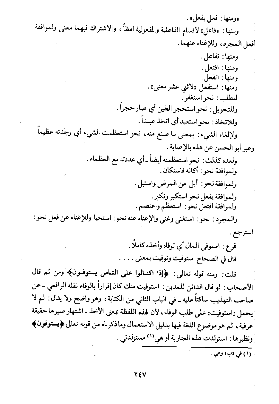 فرع: استوفي المال أي توفاه وأخذه كاملًا.