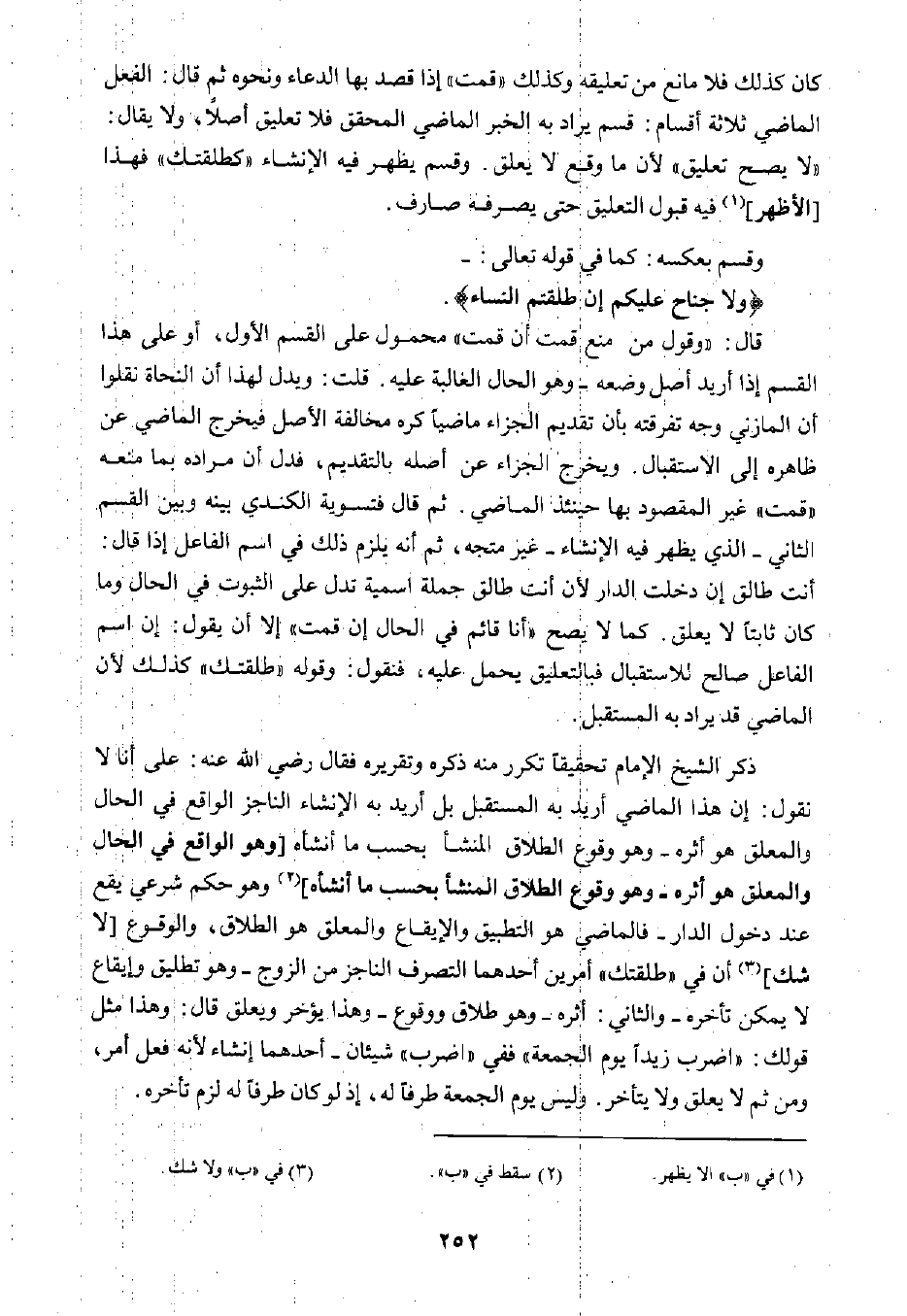 كان كذلك فلا مانع من تعليقه وكذلك "قمت" إذا قصد بها الدعاء ونحوه ثم قال: الفعل الماضي ثلاثة أقسام: قسم يراد به الخير الماضي المحقق فلا تعليق أصلًا، ولا يقال: "لا يصح تعليق" لأن ما وقع لا يعلق. وقسم يظهر فيه الإنشاء "كطلقتك" فهذا [الأظهر] ١ فيه قبول التعليق حتى يصرفه صارف.