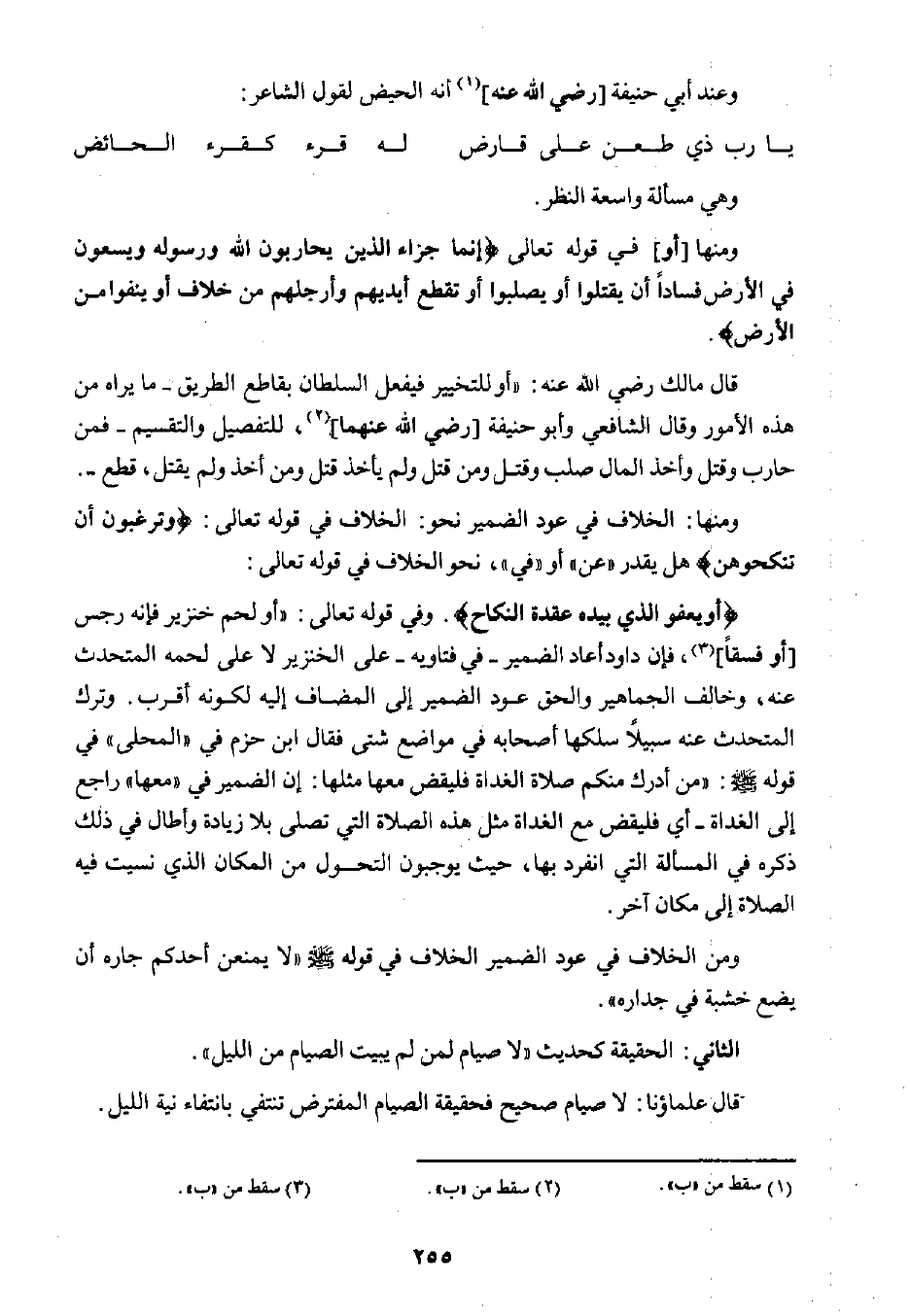 ومنها: الخلاف في عود الضمير نحو: الخلاف في قوله تعالى: {وَتَرْغَبُونَ أَنْ تَنْكِحُوهُن} هل يقدر "عن" أو "في"، نحو الخلاف في قوله تعالى: {أَوْ يَعْفُوَ الَّذِي بِيَدِهِ عُقْدَةُ النِّكَاحِ} . وفي قوله تعالى: {أَوْ لَحْمَ خِنْزِيرٍ فَإِنَّهُ رِجْسٌ [أَوْ فِسْقًا] } ٣؛ فإن داود أعاد الضمير -في فتاويه- على الخنزير لا على لحمه المتحدث عنه، وخالف الجماعير والحق عود الضمير إلى المضاف إليه لكونه أقرب. وترك المتحدث عنه سبيلًا سلكها أصحابه في مواضع شتى فقال ابن حزم في "المحلي" في قوله صلى الله عليه وسلم: "من أدرك منكم صلاة الغداة فليقض معها مثلها" إن الضمير في "معها"راجع إلى الغداة- أي فليقض مع الغداة مثل هذه الصلاة التي تصلي بلا زيادة وأطال في ذلك ذكره في المسألة التي انفرد بها؛ حيث يوجبون التحول من المكان الذي نسيت فيه الصلاة إلى مكان آخر.