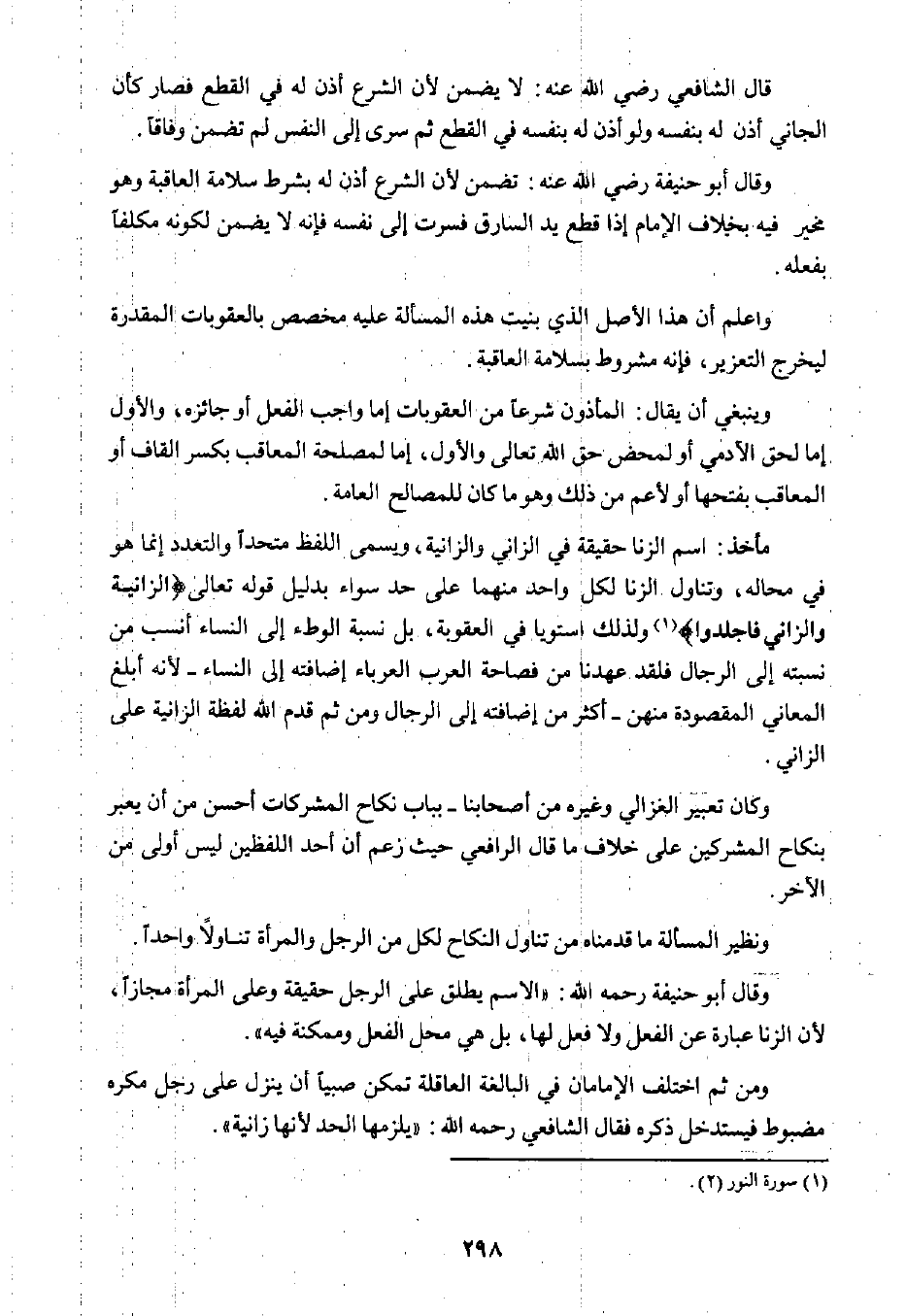 وقال أبو حنيفة رحمه الله: "الاسم يطلق على الرجل حقيقة وعلى المرأة مجازًا؛ لأن الزنا عبارة عن الفعل ولا فعل لها، بل هي محل الفعل وممكنة فيه".