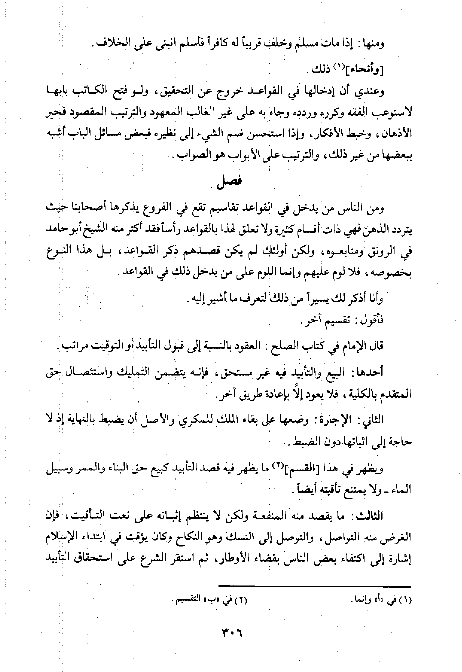 وعندي أن إدخالها في القواعد خروج عن التحقيق، ولو فتح الكاتب بابها لاستوعب الفقه وكرره وردده وجاء به على غير الغالب المعهود والترتيب المقصود فحير الأذهان، وخبط الأفكار، وإذا استحسن ضم الشيء إلى نظيره فبعض مسائل الباب أشبه ببعضها من غير ذلك، والترتيب على الأبواب هو الصواب.